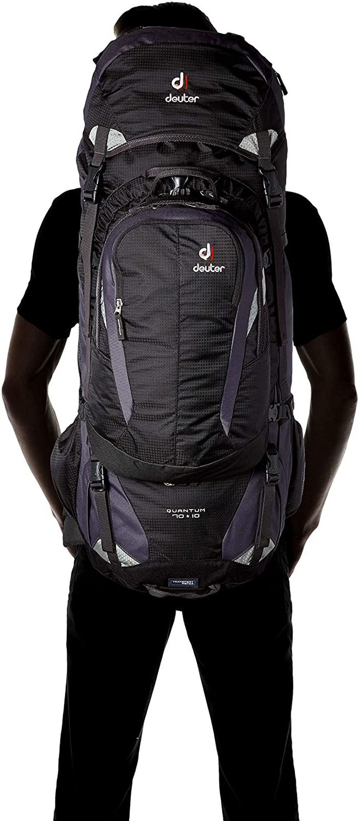 Дорожній рюкзак Deuter Quantum 70 + 10 - кращий вибір мандрівників, це комбінація класичного туристичного рюкзака Deuter Aircontact об'ємом 70 + 10 літрів разом з повноцінним міським рюкзаком об'ємом 15 літрів. Завдяки їх практичній і компактній формі, навіть при повному завантаженні ви не застрягнете в дверних отворах автобусів або потягів. Вузький силует робить цей рюкзак маневреним незалежно від місцевості. Подорожуєте ви на літаку по всьому світу або просто подорожуєте по країні, Quantum пропонує багато місця для багажу і великий знімний рюкзак. Система регулювання довжини спини VariQuick зі зручною дихаючою підкладкою. Інтегрований транспортний чохол забезпечує захист під час польотів і діє як дощовик на землі.