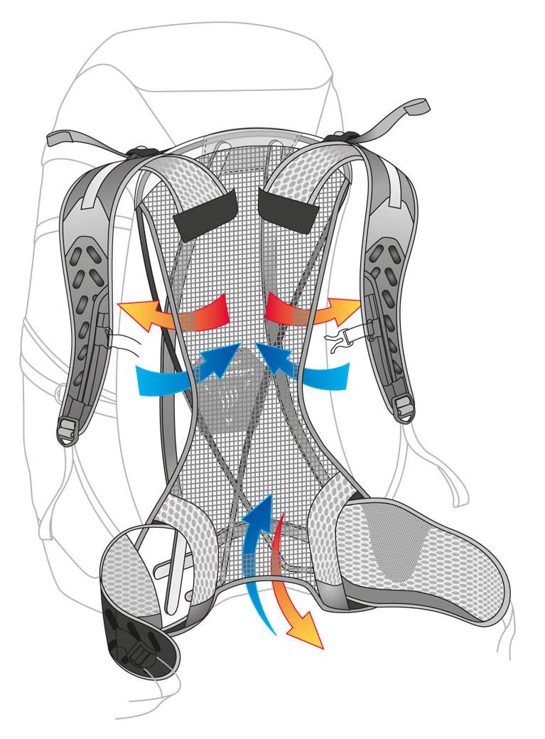 - Максимальна вентиляція в системах Aircomfort FlexLite System значно знижує виділення тепла. За даними наукового дослідження, проведеного відомим інститутом Хохештайн (Hohenstein Institute), оптимальна вентиляція спини знижує потовиділення на 25%