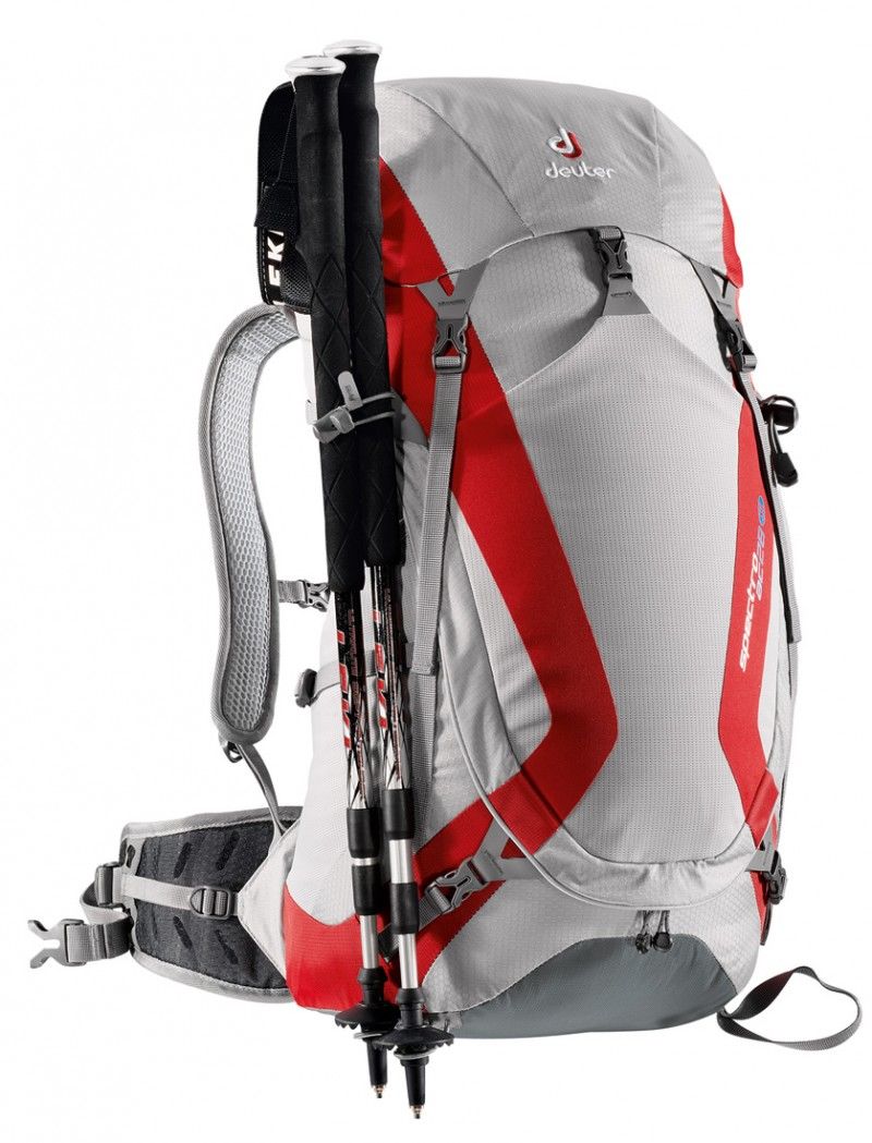 Спортивний рюкзак Дойтер Spectro AC об'ємом 28 літрів, відмінний варіант для всепогодного одно - дводенного трекінгу, хайкінга, походів. Рюкзак має класичну форму циліндра з закриваючим клапаном і крім верхній завантаження речей оснащений великим фронтальним входом на блискавці. Він також має бічні сітчасті кишені і регулювальні стропи, передня еластична кишеня петлі для трекінгових палиць, льодоруба та кращу з наявних систем вентиляції спини Aircomfort FlexLite.