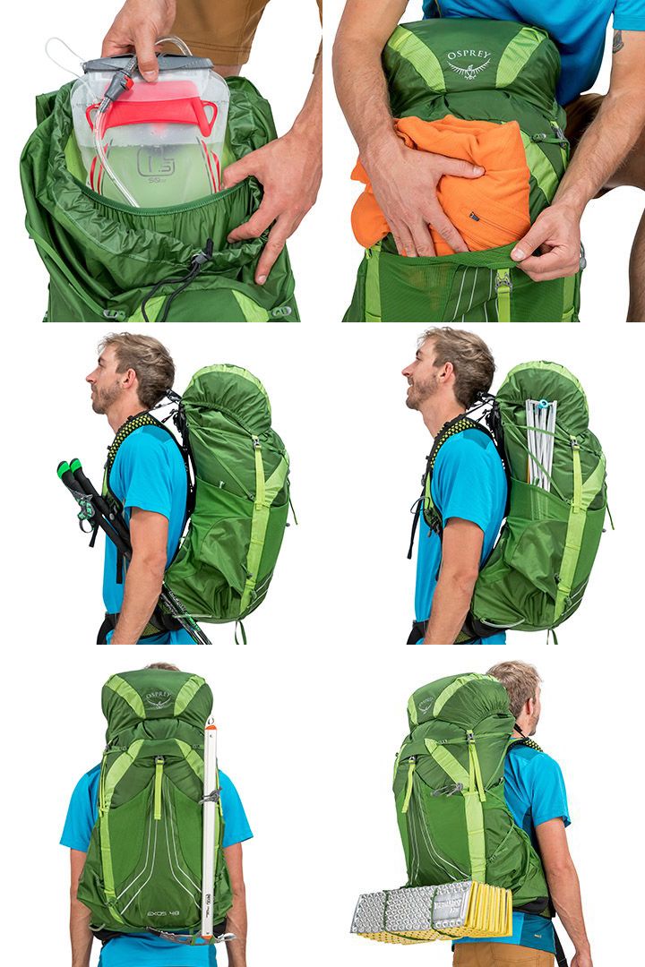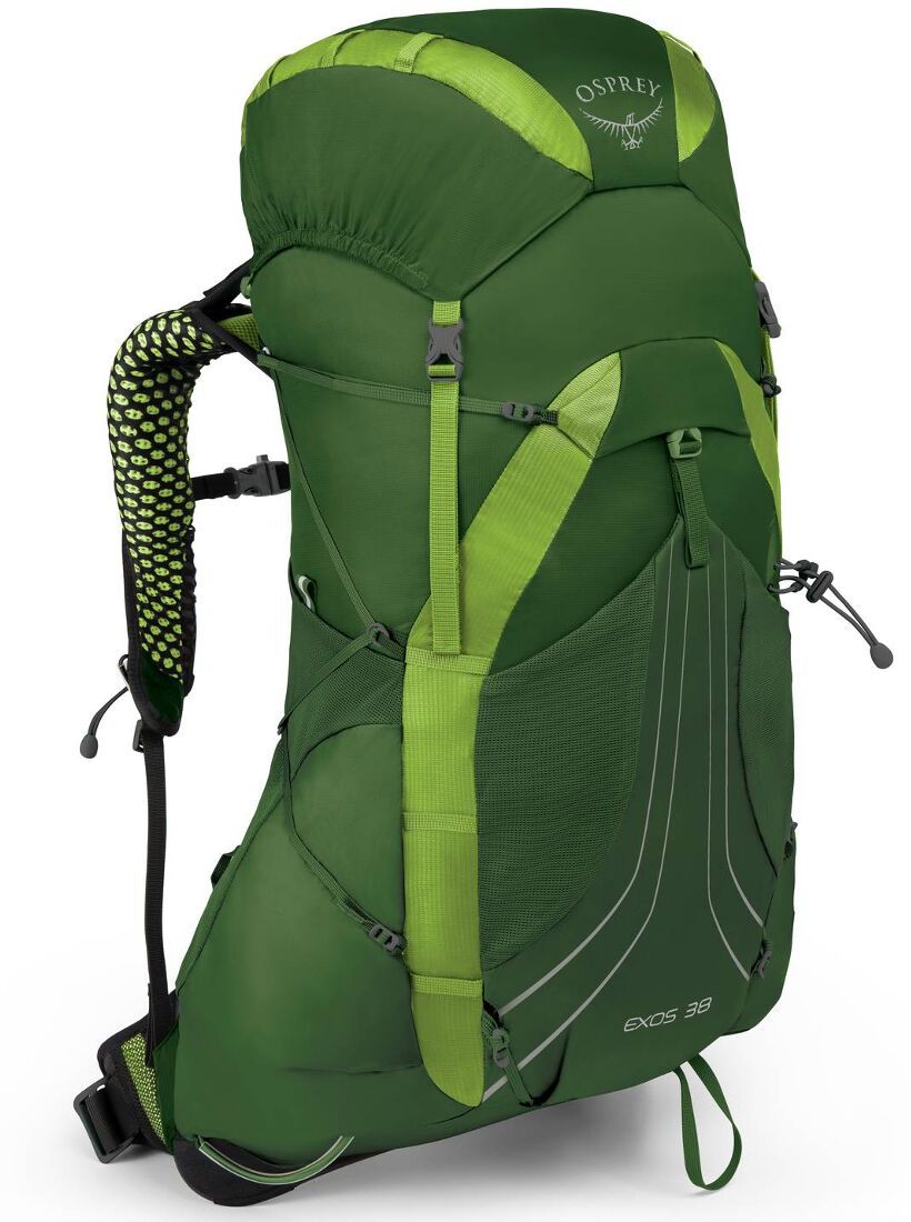 Новий надлегкий трекінговий рюкзак Оспрей Exos об'ємом 38 літрів, який пропонує поєднання преміум комфорту і неперевершеного технічного дизайну. Його шикарна повітропроникна тривимірна сітчаста задня панель підвіски AirSpeed ™ на жорсткому алюмінієвому каркасі, забезпечує неперевершену вентиляцію і комфорт. Рюкзак володіє такими зручними функціями, як Stow-on-the-Go ™ кріплення трекінгових палиць, InsideOut™ бічні кишені з двостороннім доступом, FlapJacket™ малий клапан, який закриває верх рюкзака при знятті основного клапана.