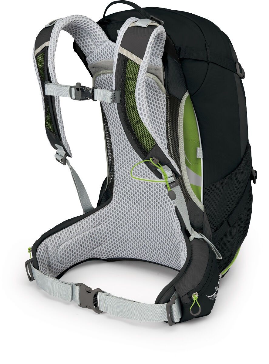 Натхненна технологією AntiGravity ™ від Оспрей, спортивний рюкзак Stratos об'ємом 24 літри пропонує повністю вентильовану систему AirSpeed ™, яка поєднує в собі єдину конструкцію задньої панелі і поясного ременя з супер дихаючої підвісний сіткою, що дозволяє підвищити комфорт в жарку погоду навіть при великому навантаженні. Класичний і чистий дизайн поряд з вражаюче зручною перенесенням роблять його фірмовим фаворитом для пішоходів і туристів, які шукають відмінно вентильований щоденний рюкзак з достатньою ємністю для запасний одягу, їжі, води та іншого спорядження. Знімний чохол від дощу, що зберігається в нижньому кишені, підвищує стійкість до погодних умов, а жорстка нейлонова тканина забезпечують довговічність. Він має велике основне відділення, зручний верхній кишеню і великий кишеня з вертикальним застібкою-блискавкою спереду, який ідеально підходить для надійного зберігання куртки або запасного шару одягу з легкогим доступом. Stratos 24 - ідеальний рюкзак для теплих днів на звивистих стежках, він сумісний з усіма питними системами Hydraulics ™ і Hydraulics LT ™.