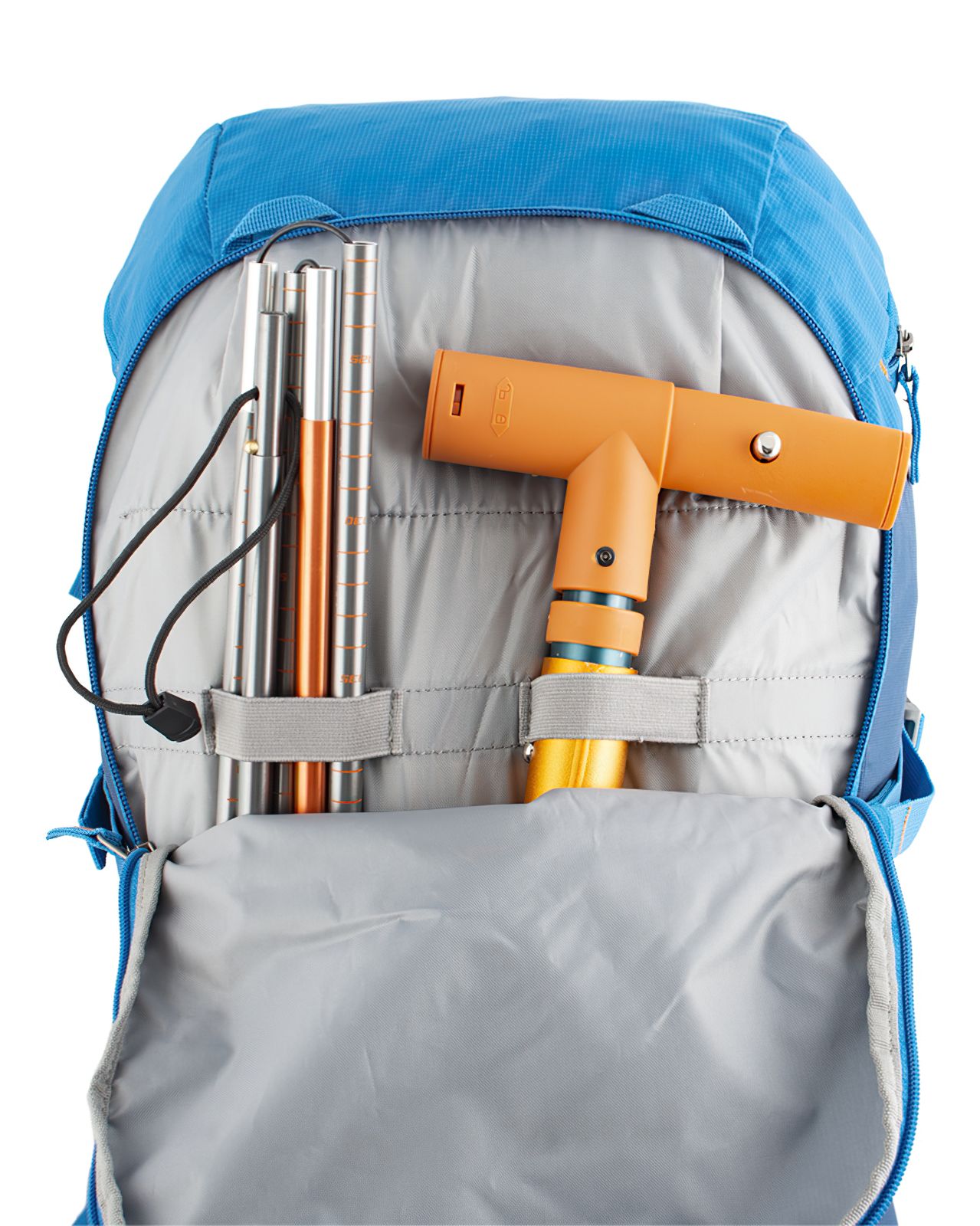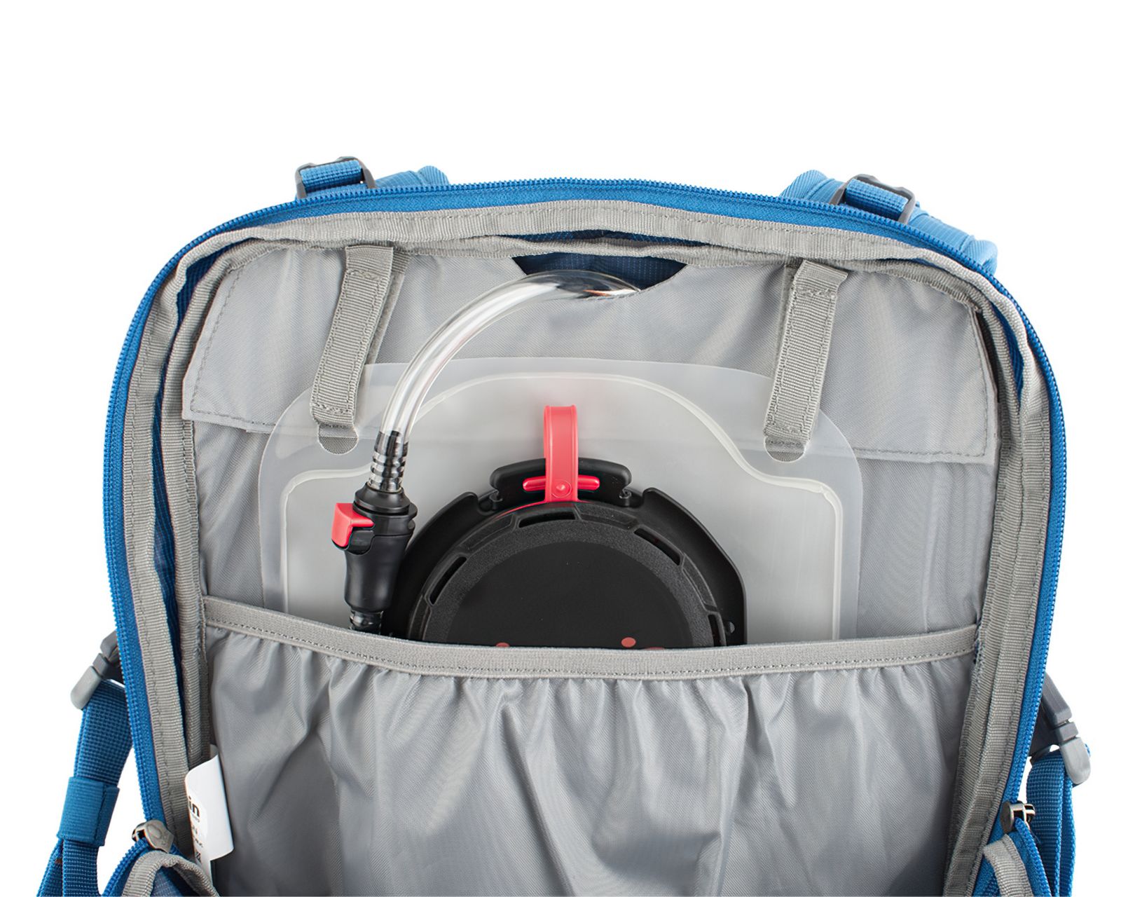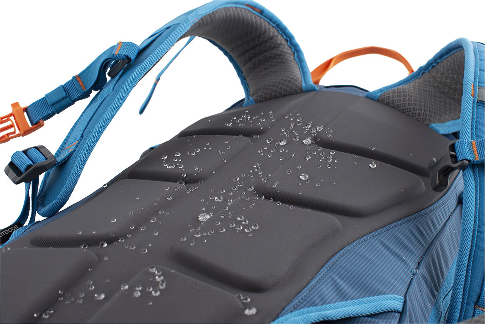 Задня частина рюкзака посилена знімною плитою HDPE (поліетилен високої щільності) з вбудованим дюралюмінієвим посиленням, яке допомагає розподілити вагу вантажу на спині і усуває тиск транспортуються предметів в спину.