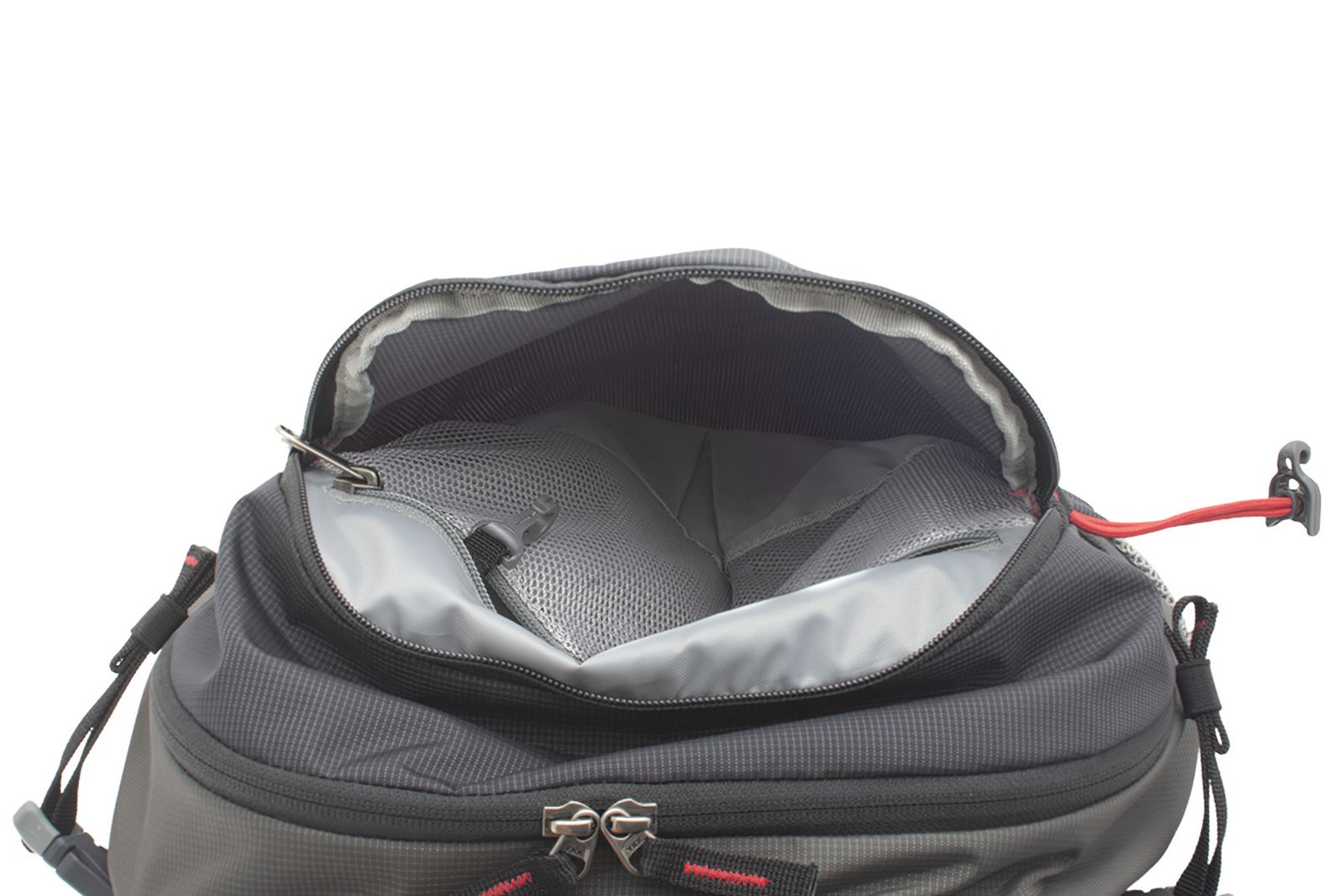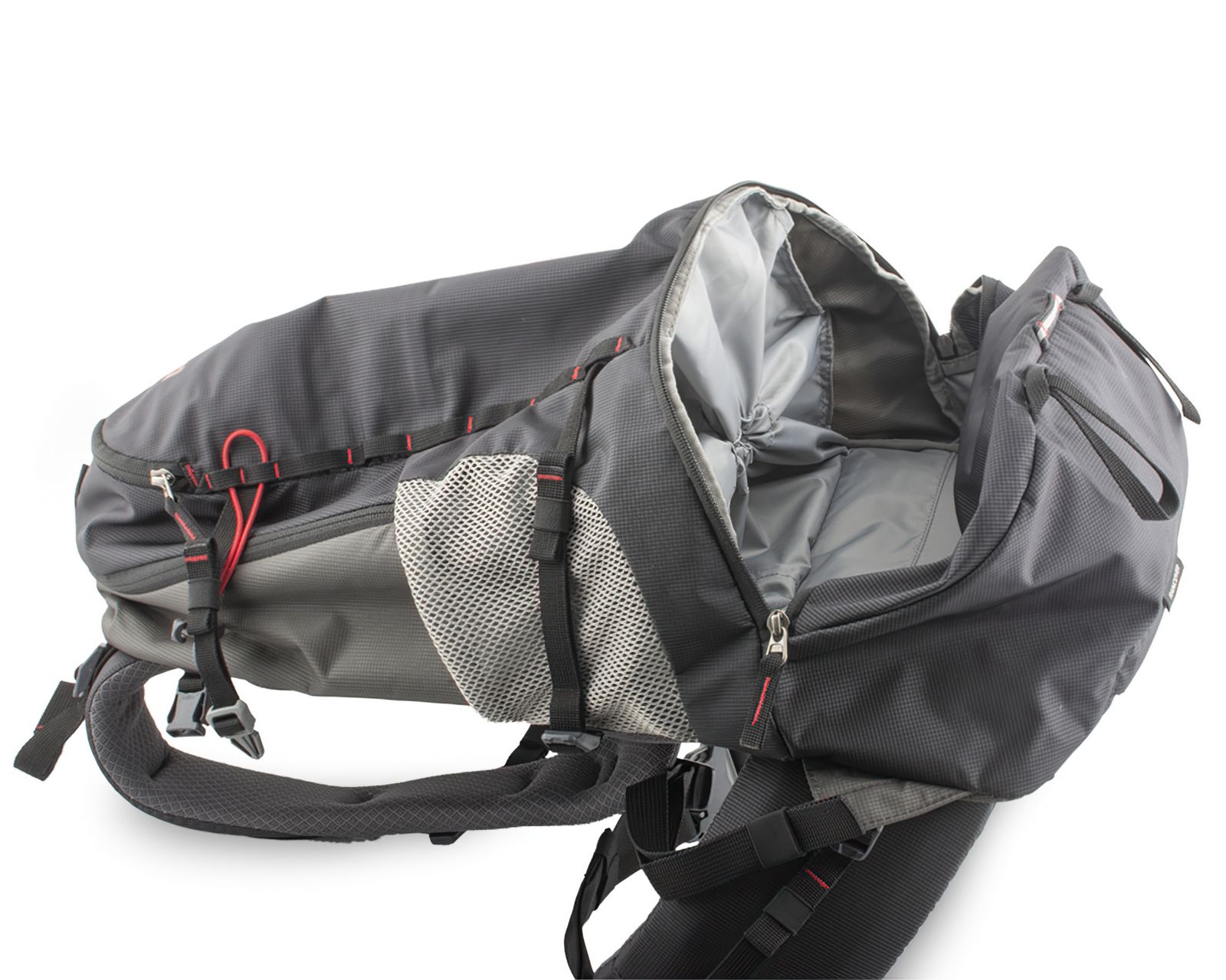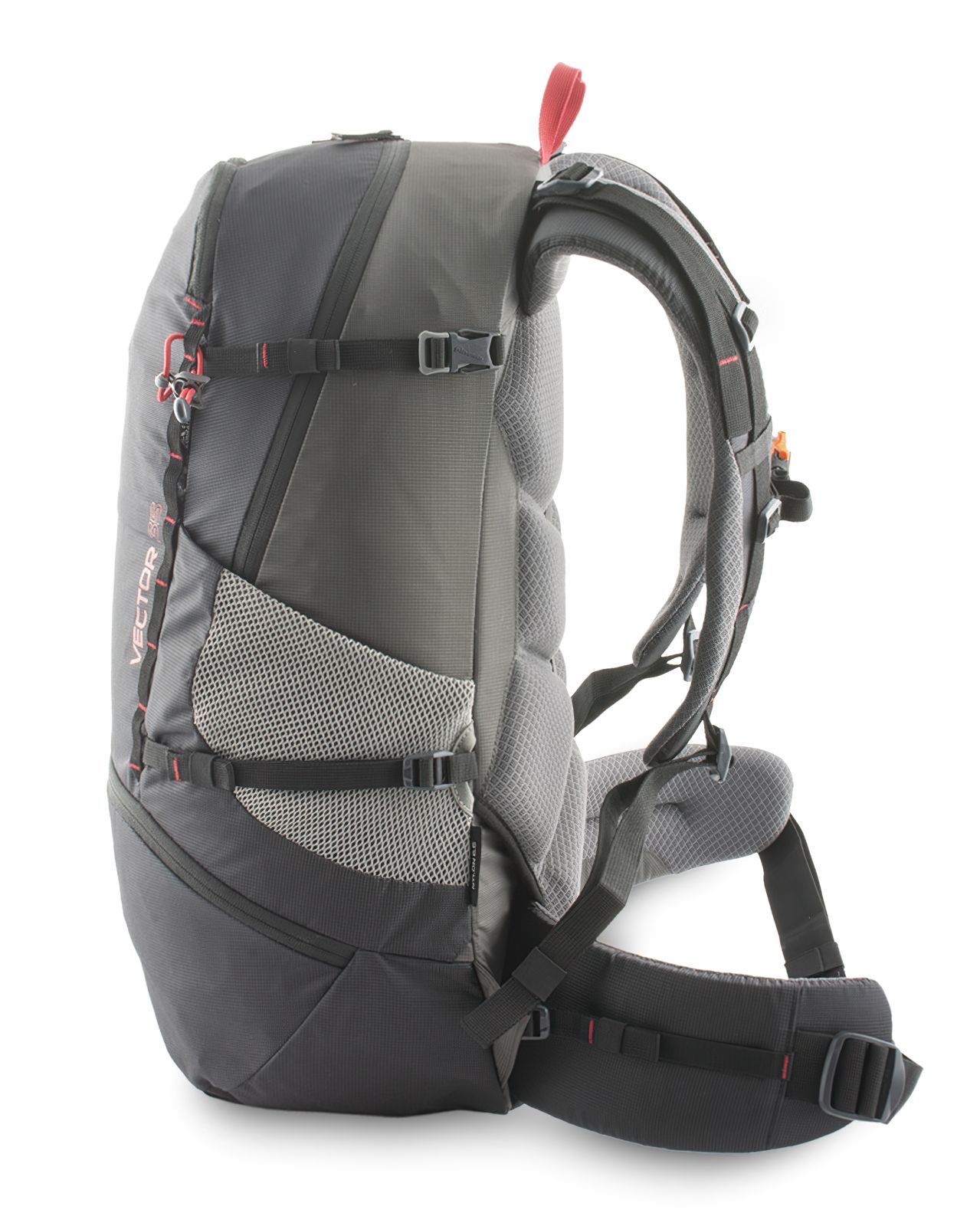 Комфортна вшита тривимірна сітчаста спинка з подушками, покритими дихаючої 3D тканиною, забезпечує ефективну вентиляцію спини при збереженні оптимального розподілу навантаження. Задня частина рюкзака посилена знімною плитою HDPE (поліетилен високої щільності) з вбудованим дюралюмінієвим посиленням, що допомагає розподілити вагу вантажу на спині і усуває тиск транспортуються речей на спину.