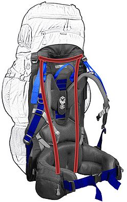 Гнучка система підвіски рюкзака V-VAR Carry System може регулюватись індивідуально під конкретний зростання туриста; дві внутрішніх вертикальних і одна горизонтальна алюмінієві стійки створюють раму жорсткості, яка забезпечує відмінне розподіл навантаження і стабільність. Ергономічні плечові ремені забезпечують чудову свободу руху в області плечей.