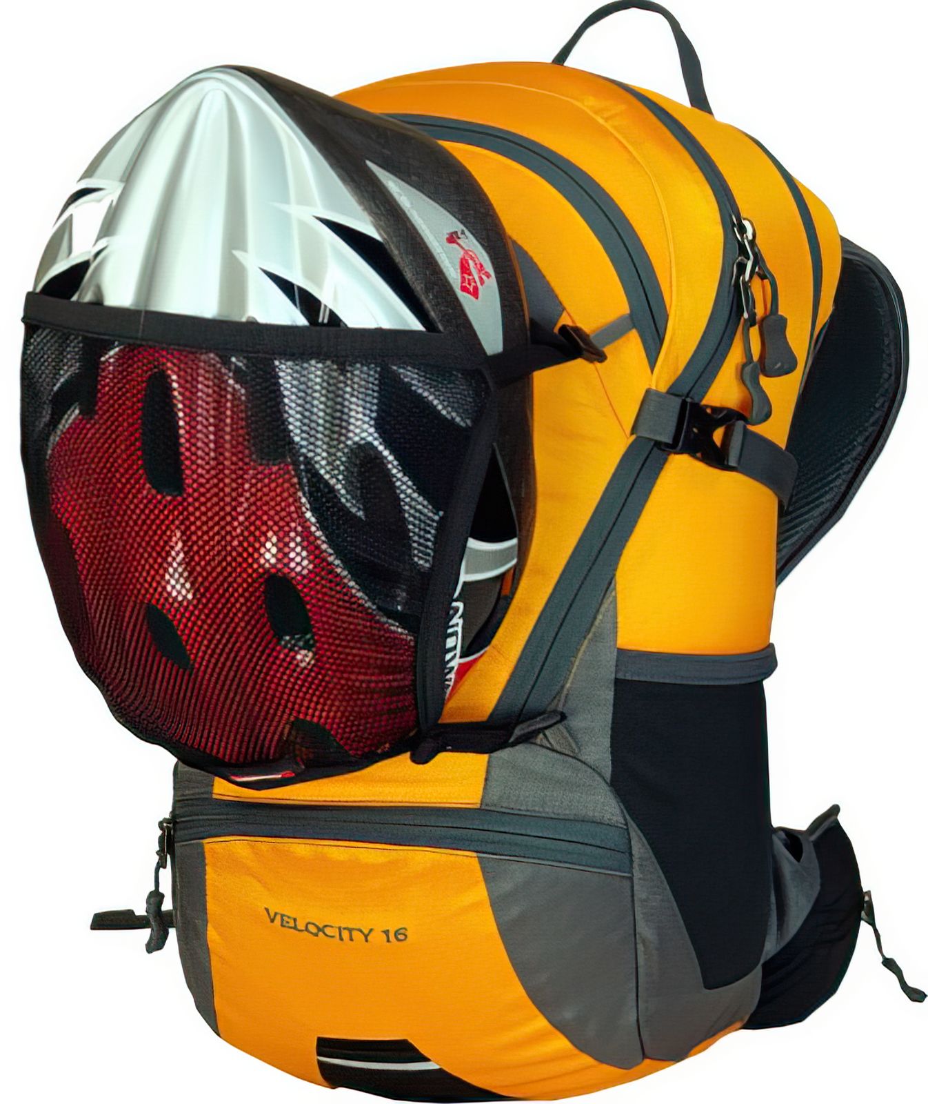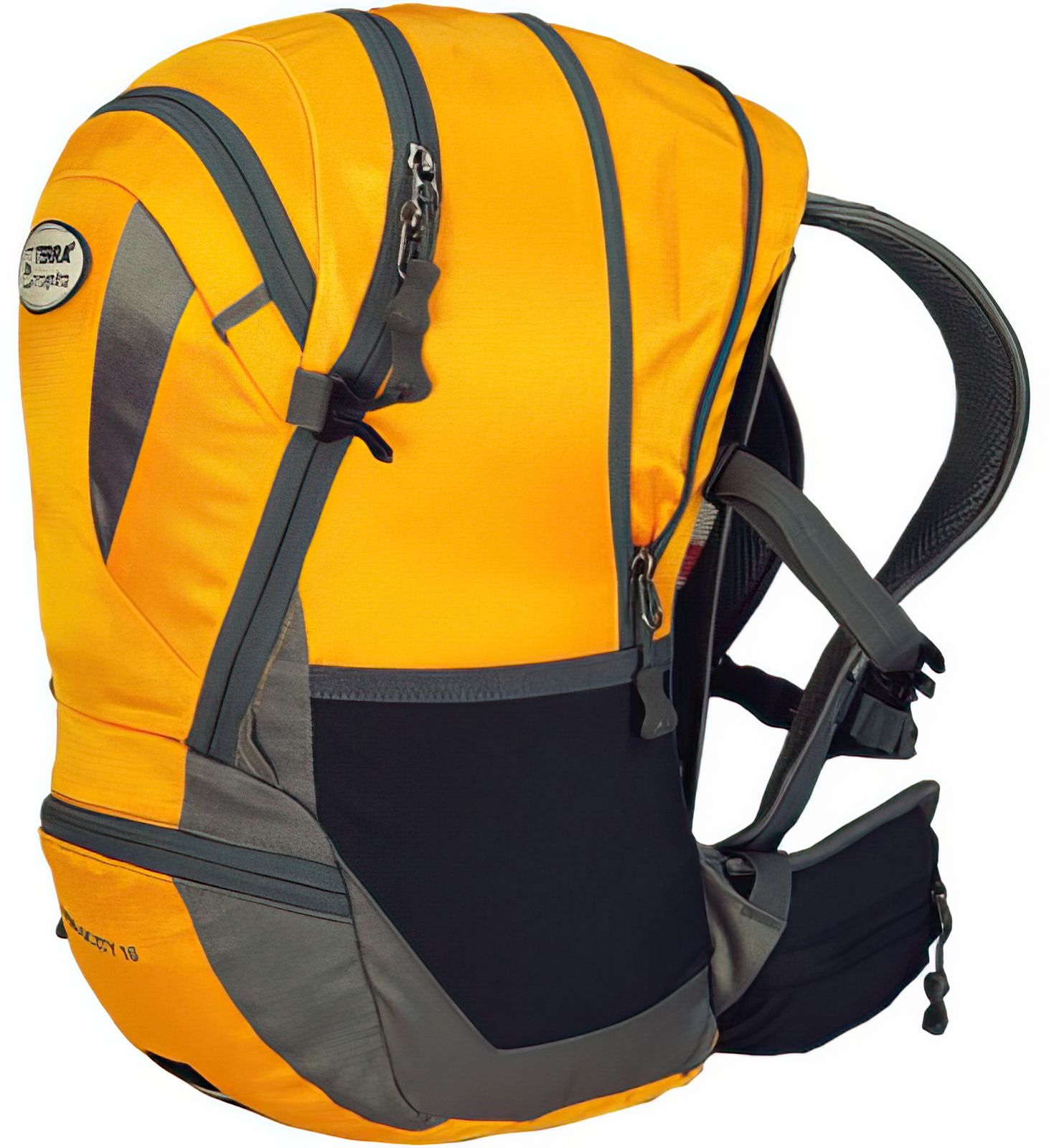 Спортивний рюкзак Тера Інкогніта об'ємом 16 літрів з сітчастою спиною натягнутою на сталевий каркас, вона забезпечує кращу з можливих вентиляцій. Знімна еластична сітка для кріплення велошолому, збільшення обсягу головного відділення за рахунок розкриття додаткової блискавки, знімний яскраво-жовтий водостійкий чохлом від дощу.