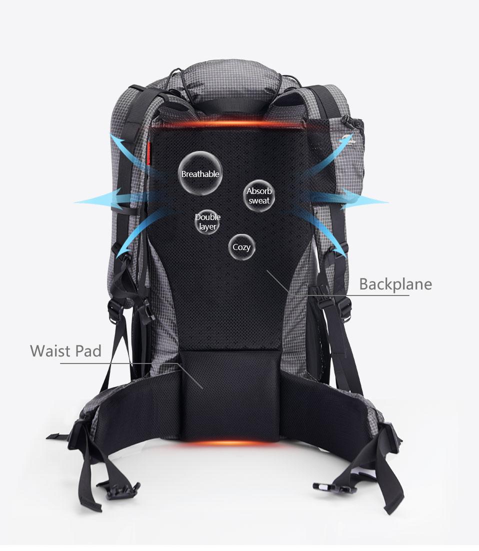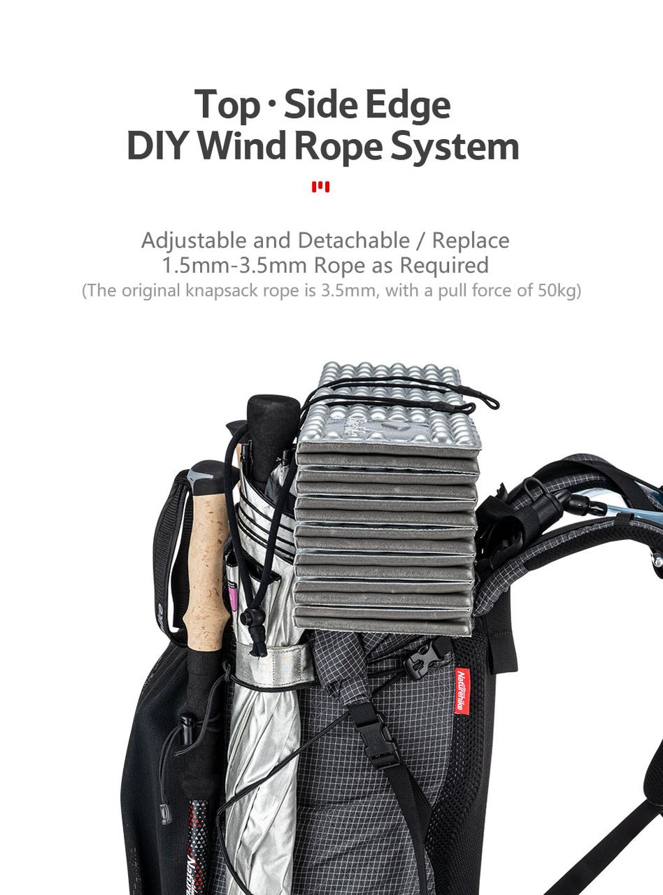 Рюкзак Naturehike Rock 60l имеет высоту 53 сантиметра, ширину 26 сантиметров и глубину 18 сантиметров. Rock весит всего 1,16 кг для «стандартной» версии, но есть также версия Dyneema, которая весит 1,31 кг. Его максимальная нагрузка составляет 15 кг