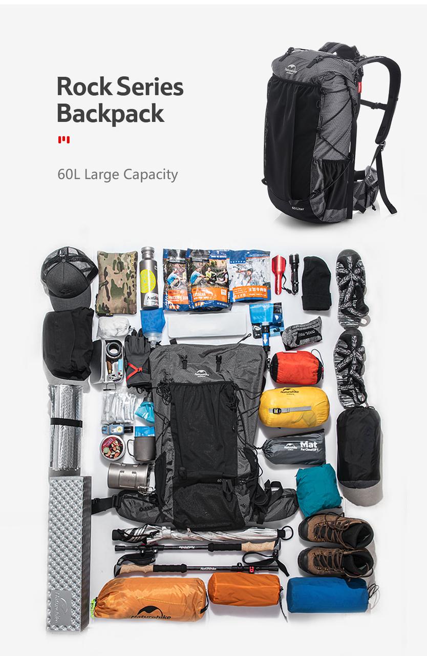 Большой вместительный дорожный походный рюкзак для кемпинга. Naturehike Rock отличается инновационной эргономичной рамой из легкого алюминия. Он спроектирован так, чтобы удобно и безопасно распределять нагрузку по всей спине, а не только на плечах. Имеет специально усиленную и мягкую заднюю панель и поясную ручку, которая плотно прилегает к вашему телу.