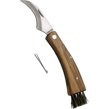 Ніж грибний Baladeo. Ергономічна дерев'яна ручка. Лезо з нержавіючої сталі серповидної форми. Щітка з щетини свині для очищення гриба від землі. Пінцет в комплекті. Розміри: 11 х 3,2 х 2,1 см Вага: 125 г