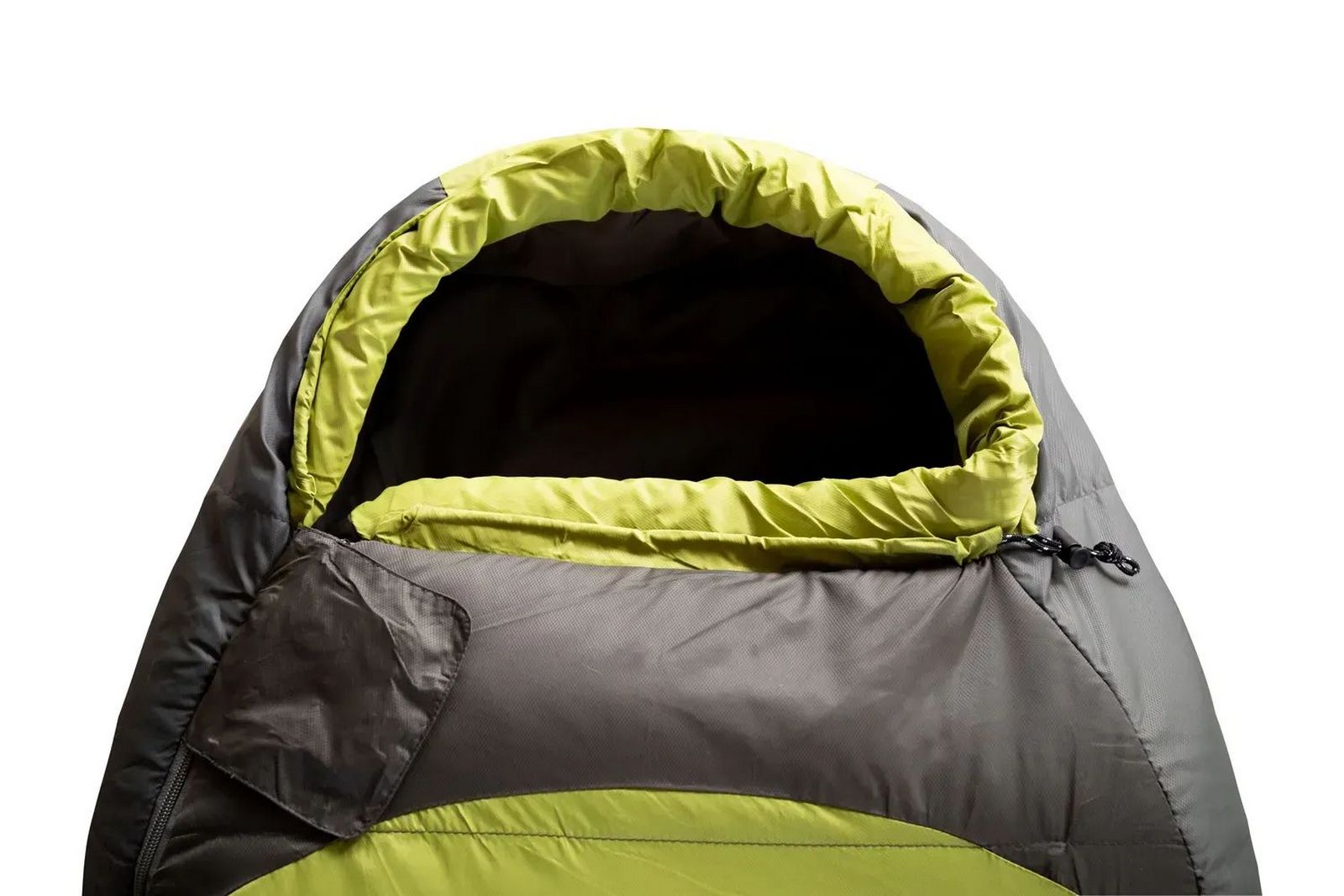 - анатомічно розширена зона для ніг 3D Footbox: нижня частина спальника має спеціальну трапецієподібну форму, яка створює простір для ваших ніг, забезпечуючи їх вільне розміщення в природному положенні, забезпечуючи більший комфорт під час сну