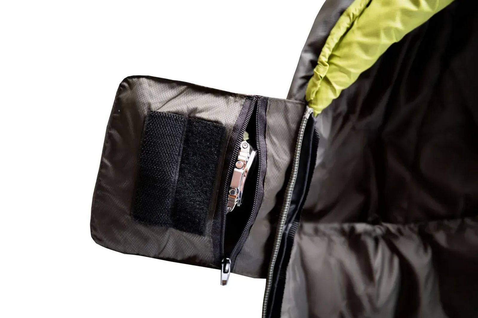 - блискавка з двома бігунками: основний з двома пулерами для відкривання з середини та допоміжний внизу спального мішка