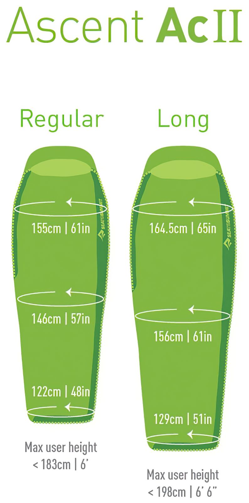 Sea to Summit Ascent Ac II - пуховий спальний мішок, легкий, теплий, зручний і, що найголовніше, адаптується, який має переважно форму скошеного прямокутника, тому має більше місця, ніж традиційні спальники в формі кокона. Це спальник для використання в холодну пору року, коли температури опускаються до -10 градусів. Він буде дуже хорошим вибором для зимових походів і гірських сходжень. Ascent AcII порівняно легкий, як для своїх температур, всього 1100 грам, і відповідно досить компактний, він стискається до розміру висоти пляшки в 0,75 літра.