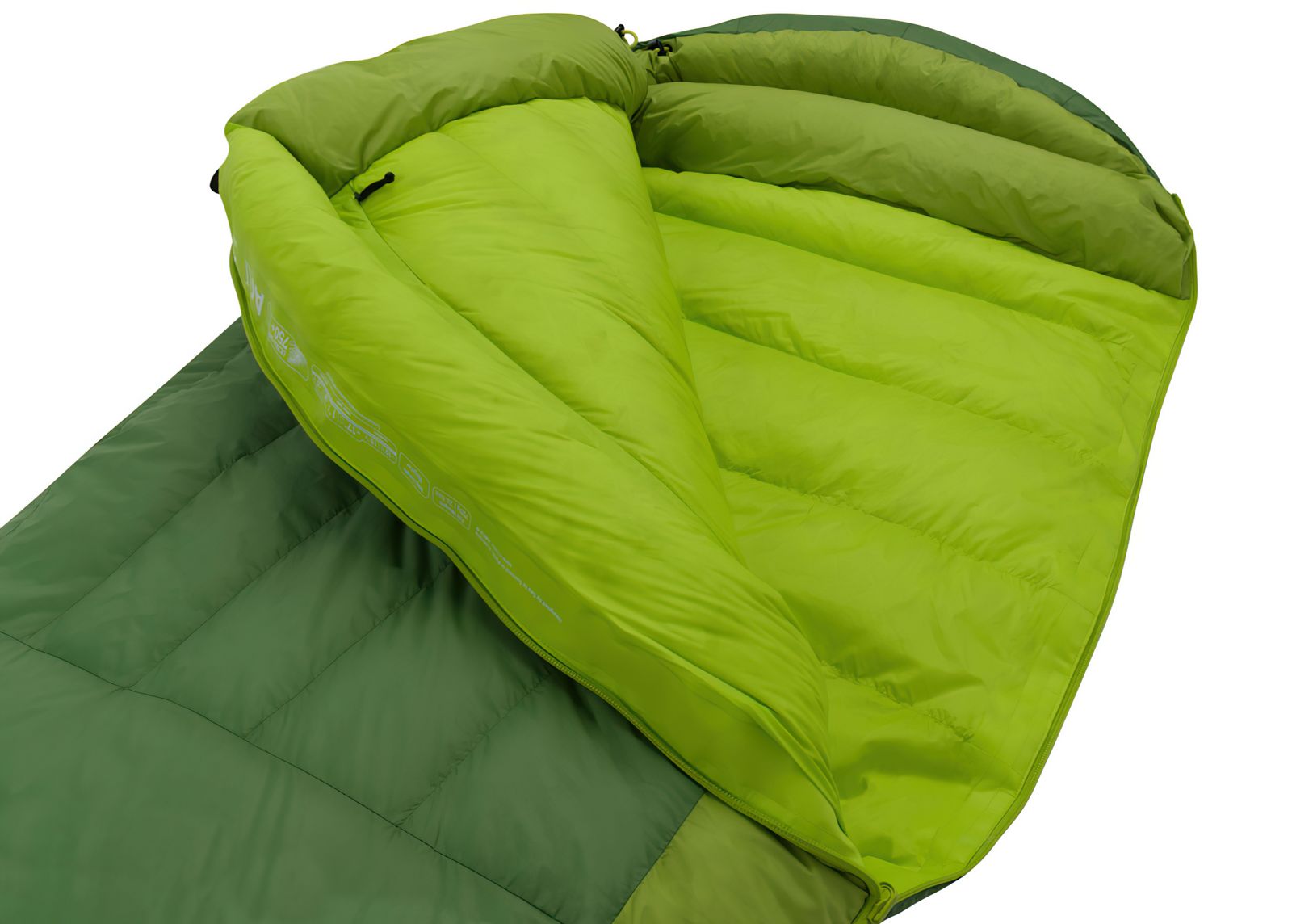 В пухових і синтетичних спальниках, позначених символом застібки-блискавки, використовується повнорозмірна блискавка YKK №5 довжиною 165 см, яка дозволяє поєднувати унісекс спальники, які випускаються тільки Left лівої блискавкою і жіночі спальники, які випускаються з Right правої блискавкою. Розроблено для спільного використання, кожна людина спить у своєму спальному мішку, що дозволяє кожному скористатися унікальними ізоляційними зонами свого спальника. Капюшон і зона в ногах - ідеально підходять для затишних пригод вдвох.