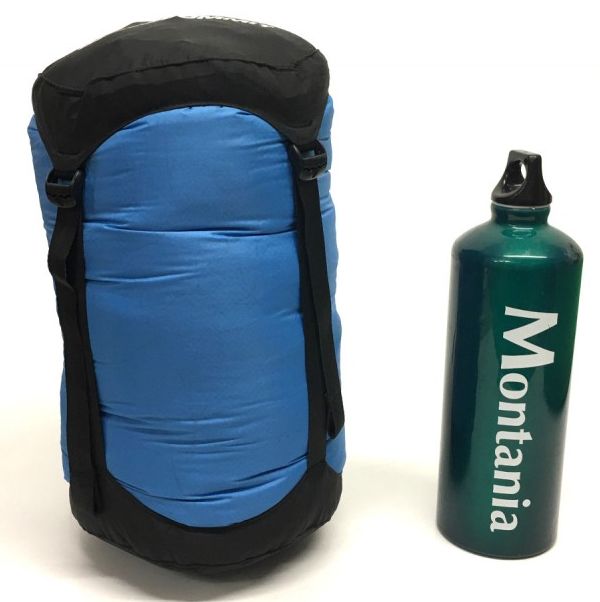 Компресійний мішок вагою 58 грам і регульованим об'ємом від 10 до 3,3 літрів, об'єм спальника в компресійному вигляді 5,5 літра відповідно до стандарту ASTM F1853-11