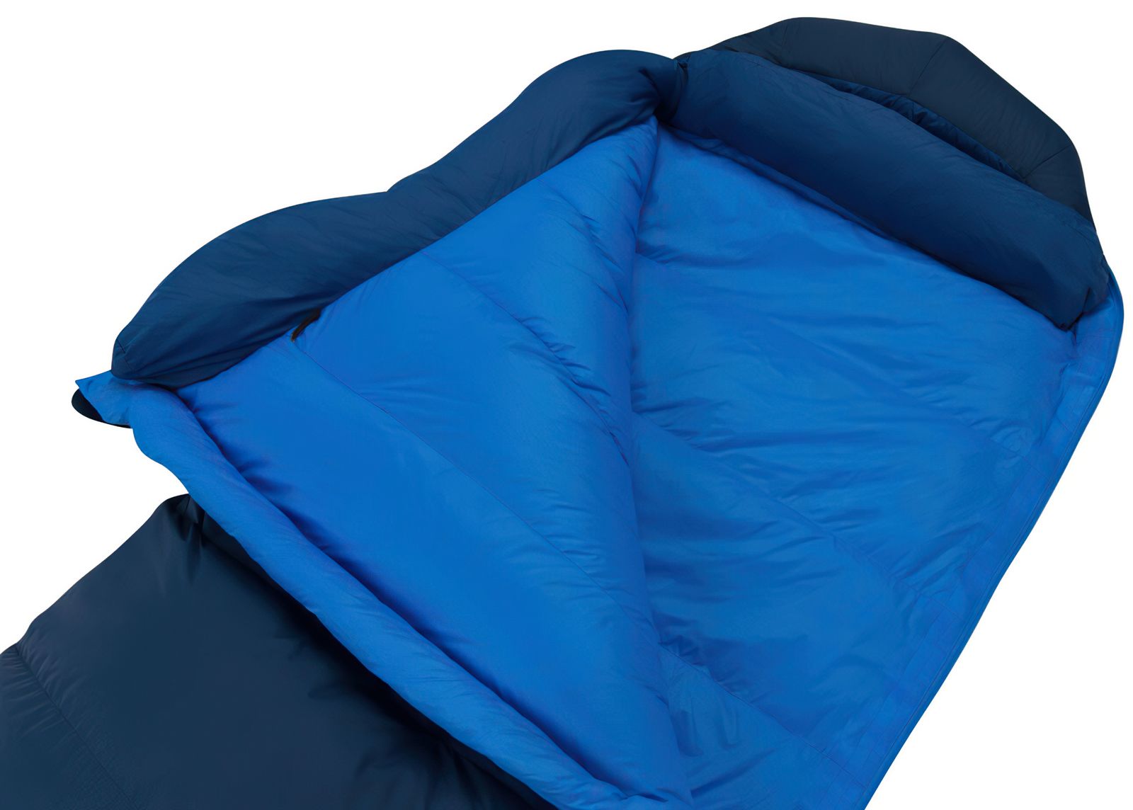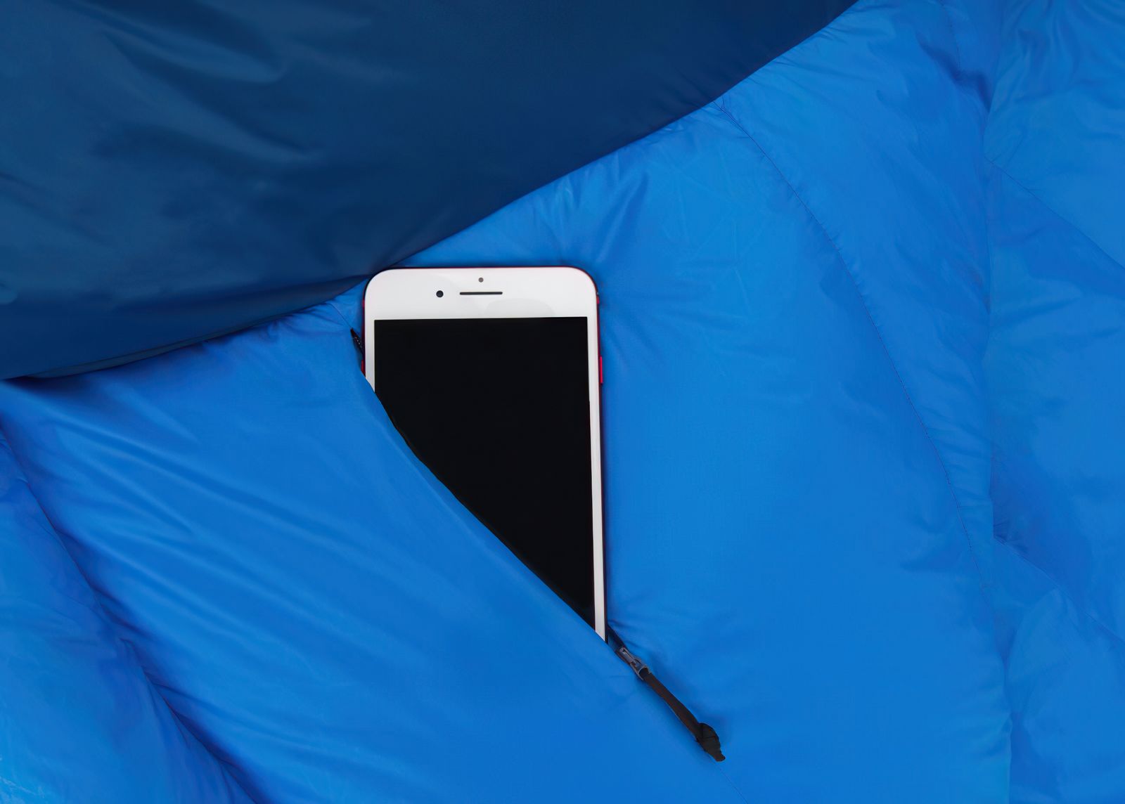 В пухових і синтетичних спальниках, позначених символом застібки-блискавки, використовується повнорозмірна блискавка YKK №5 довжиною 165 см, яка дозволяє поєднувати унісекс спальники, які випускаються тільки Left лівої блискавкою і жіночі спальники, які випускаються з Right правої блискавкою. Розроблено для спільного використання, кожна людина спить у своєму спальному мішку, що дозволяє кожному скористатися унікальними ізоляційними зонами свого спальника. Капюшон і зона в ногах - ідеально підходять для затишних пригод вдвох.