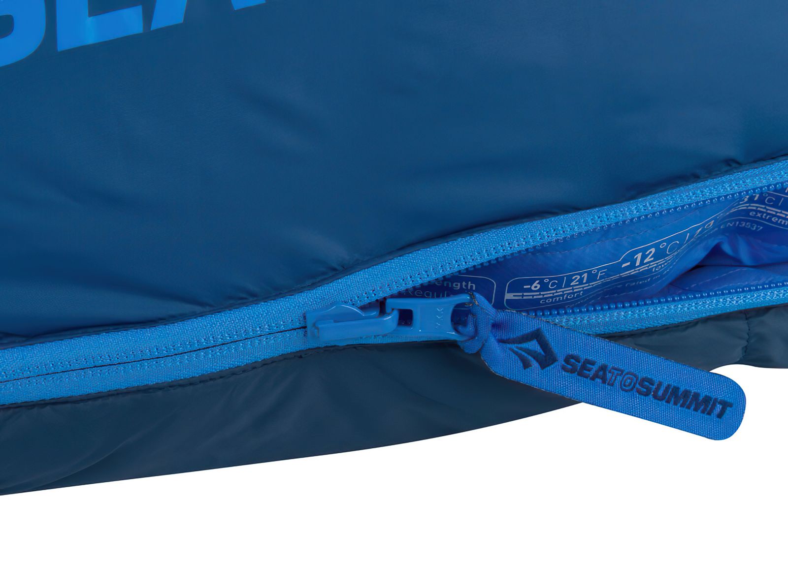 Качиний пух 650+ Fill Power означає, що 1 унція пуху знову розшириться до більш ніж 650 кубічних дюймів після стиснення. Чим вище Fill Power, тим менше пуху можна використовувати для досягнення тієї ж температури, що важливо для спальних мішків з високими експлуатаційними характеристиками. Якість / склад Fill Power і пуху проходять незалежну перевірку Міжнародної лабораторією пуху і пера "Down and Feather Laboratory" (IDFL) - кожна модель пухової спального мішка Sea to Summit пройшла дану сертифікацію.