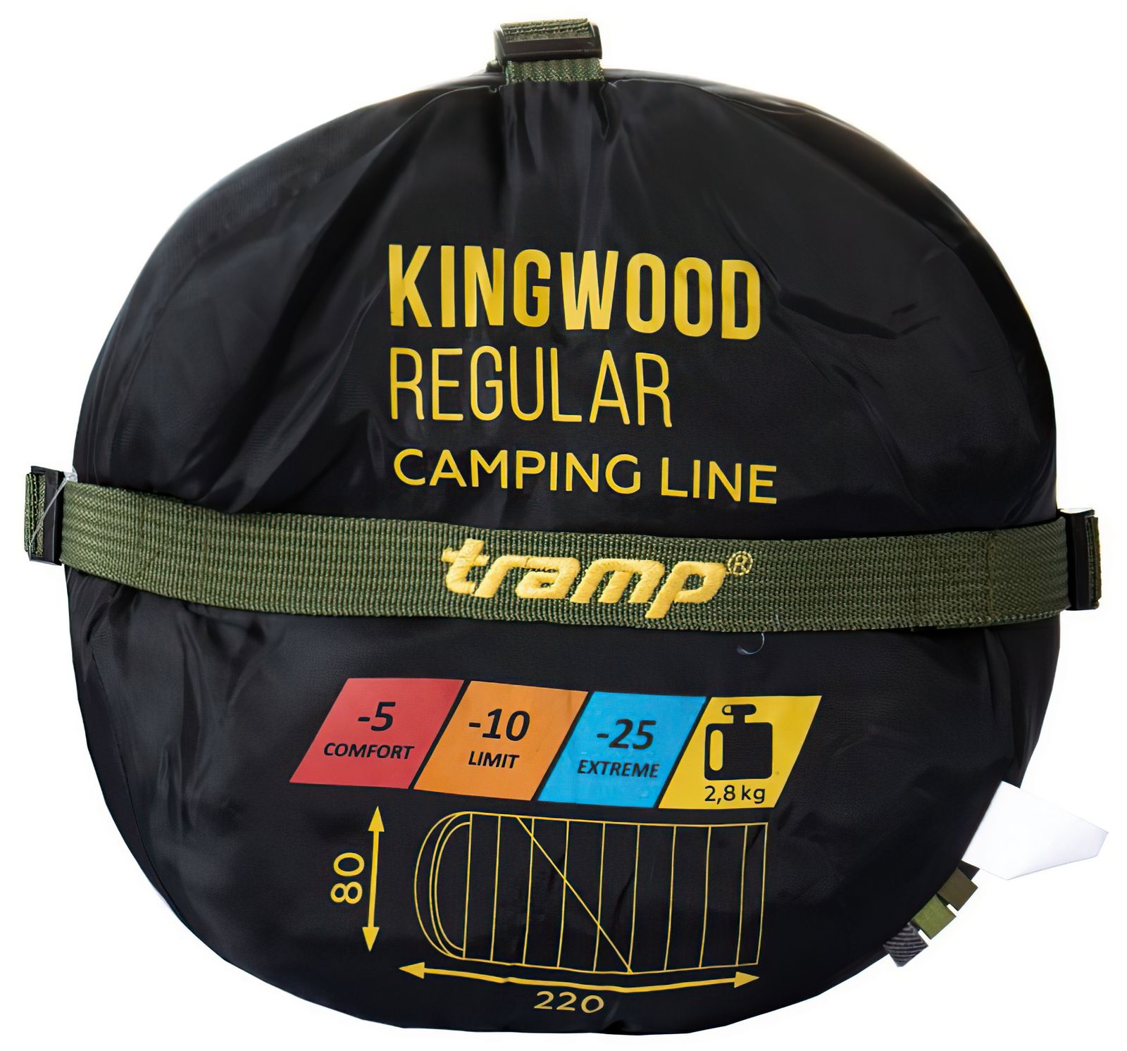 Спальний мішок, ковдра з капюшоном Tramp Kingwood - дуже теплий зимовий спальник з ефективним синтетичним наповнювачем, відмінний варіант для ночівлі на природі з машиною. Прямокутна форма забезпечує вам максимальний комфорт під час сну за рахунок більшого внутрішнього простору, при цьому дає можливість повністю розкрити спальник і використовувати в якості ковдри. Випускається в двох розмірах Regular 220х80 см і Long 230х100 см, кожен відповідно з лівої "L" і правої "R" блискавками, таким чином спальник можна також состегнуть парно з іншим спальним мішком. Упаковується в високоякісний компресійний мішок.