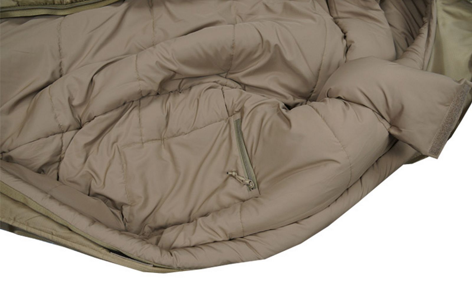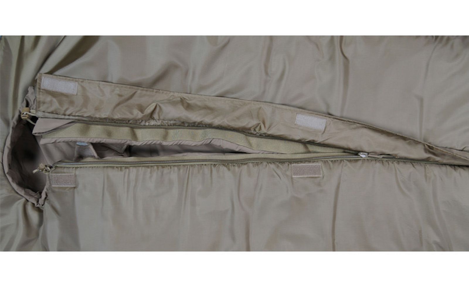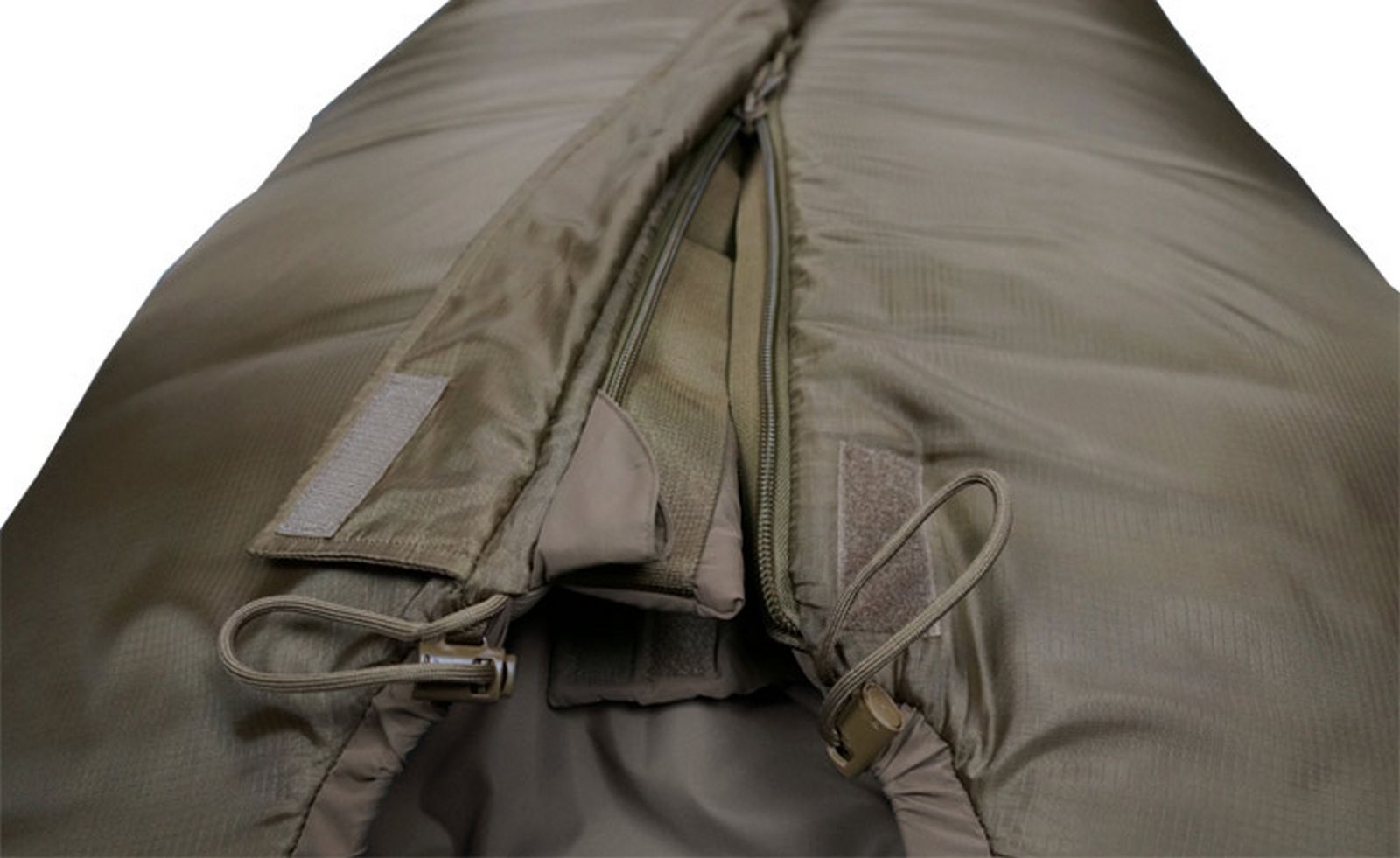 Має фронтальну застібку типу «блискавка» з двома двосторонніми зустрічними замками, що дозволяє за необхідності вентилювати спальник. Застібка захищена зсередини спеціальною планкою, що утеплює, яка запобігає проникненню холоду. Капюшон стягується та регулюється шнурами з фіксатором. Додатково передбачений зсередини комір, що утеплює, в районі шиї. Має внутрішню кишеню для документів. Удосконалена система фронтальної блискавки дозволяє вилазити із спального мішка за кілька секунд. Упаковується в індивідуальну компресійну упаковку, яку можна укласти в кишеню в зоні ніг зовні спального мішка.
