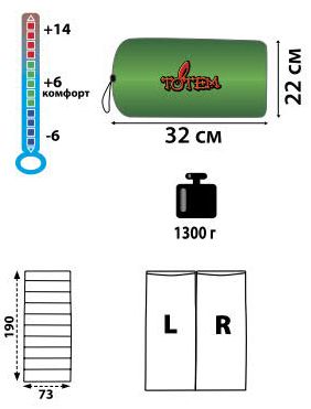 Спальний мішок-ковдра без капюшена Totem Ember довжиною 190 см і шириною 73 див. Відмінний літній спальник для походів в телое час року. Його можна також зістебнути парно з іншим спальним мішком. Упаковується в високоякісний компресійний чохол.