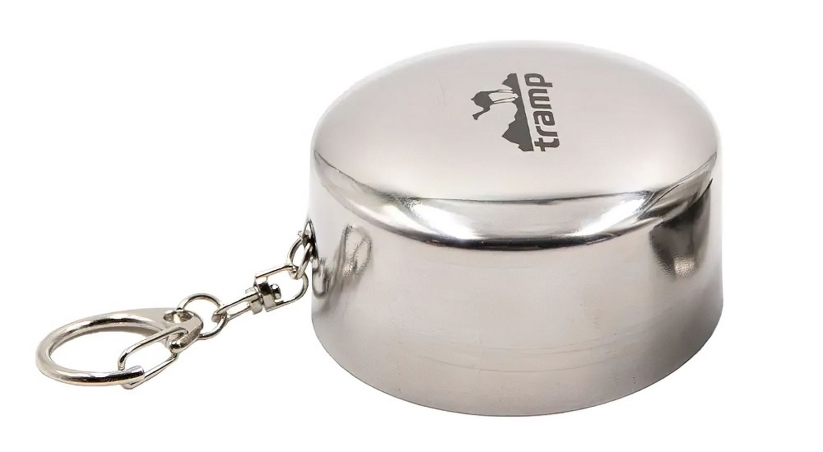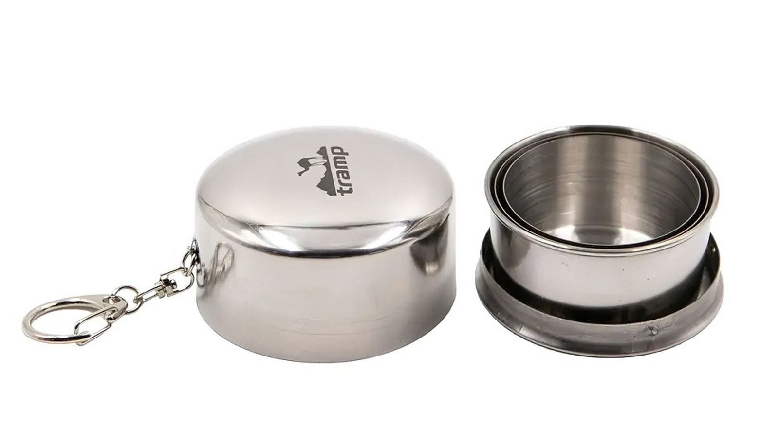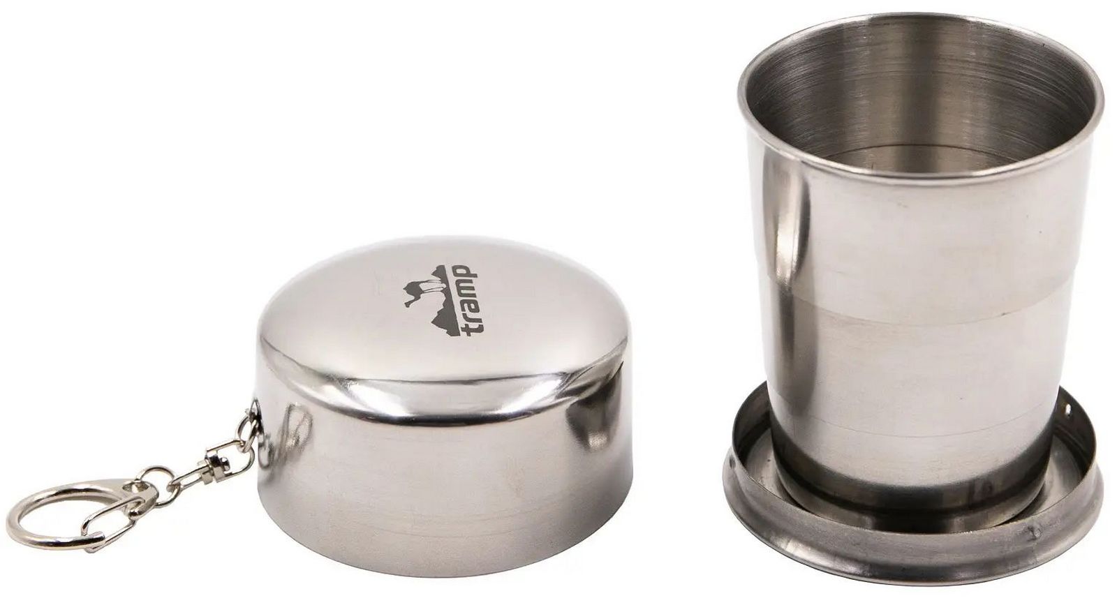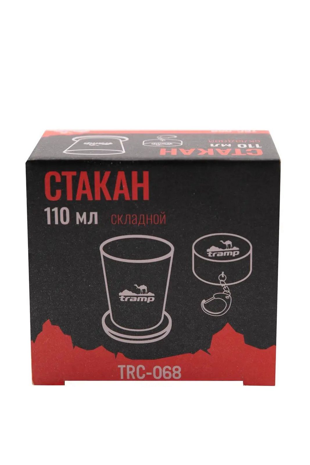 Складається "телескопічний" стакан з нержавіючої сталі Tramp TRC-068 об'ємом 110 мл. У складеному стані закривається кришкою, оснащений карабіном на ланцюжку.