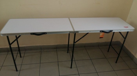 Стіл Tramp зі складними алюмінієвими ніжками, стільниця з МДФ товщиною 4,2 мм світлого відтінку. Розмір в розкладеному стані: 198 х 60 х 78 див. Вага: 7,1 кг Розмір в упаковці: 99х60х6,6 див.