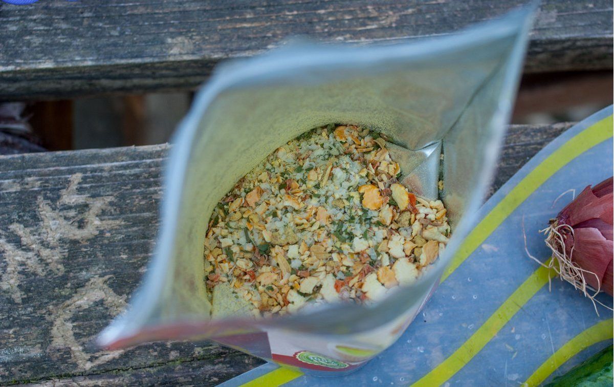 Спосіб приготування: перед вживанням струсити пакет, відкрити, дістати поглинач, залити блюдо окропом 400 мл до рівня 9 на лінійці праворуч, ретельно перемішати, закрити замок на пакеті і почекати 10 хвилин. Після чого страва готова, можна вживати. Смачного!
