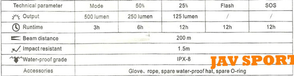 Ліхтар оснащений потужний світлодіод Cree XP-G R5) виробництва американської компанії Cree Incorporated, тривалість роботи якого складає не менше 100000 годин, даний світлодіод здатен генерувати світловий потік величиною 500 люмен, що дає можливість висвітлювати місцевість дальністю до 200 метрів.