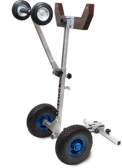 Компактний і легкий візок M-Truck MW з додатковими колесами в ручці для перевезення човнового мотора, він важить всього 12 кг і спеціально спроектований так, щоб ви могли встановити на нього будь-підвісний мотор з вагою до 60 кг, тобто потужністю десь до 25 л. с. Він дуже простий в експлуатації, ви можете регулювати ширину виносу колісної бази, винос опори кіля, висоту транцевой плити і кут наклана рукоятки. Візок легко може бути зібрана до усього лише невеликого розміру. Встановіть ви свій мотор на візку для потокового сервісного обслуговування або ж просто на тривале зберігання, ви ніколи не пошкодуєте про свій вибір.
