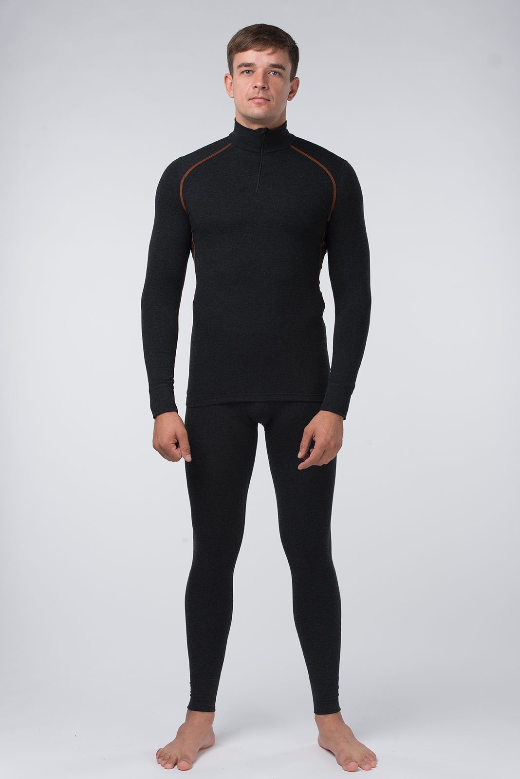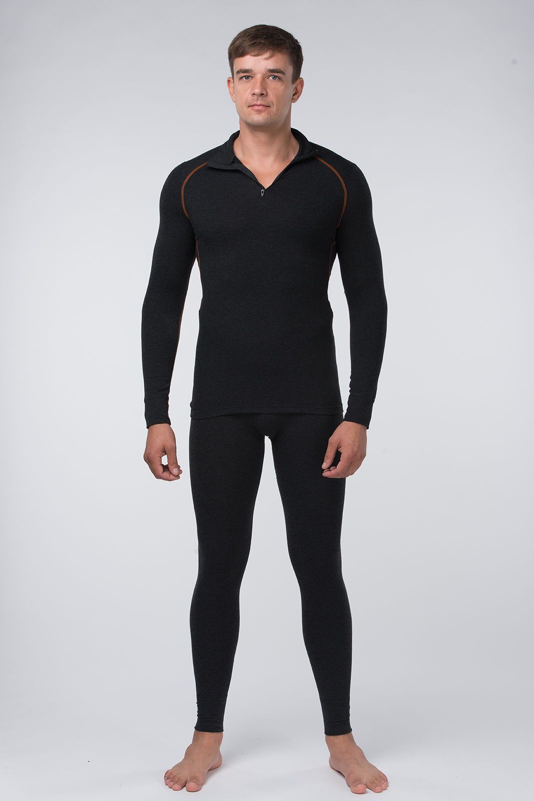 Комплект складається з джемпера з високим коміром і блискавкою на грудях і кальсонів, колір чорний.