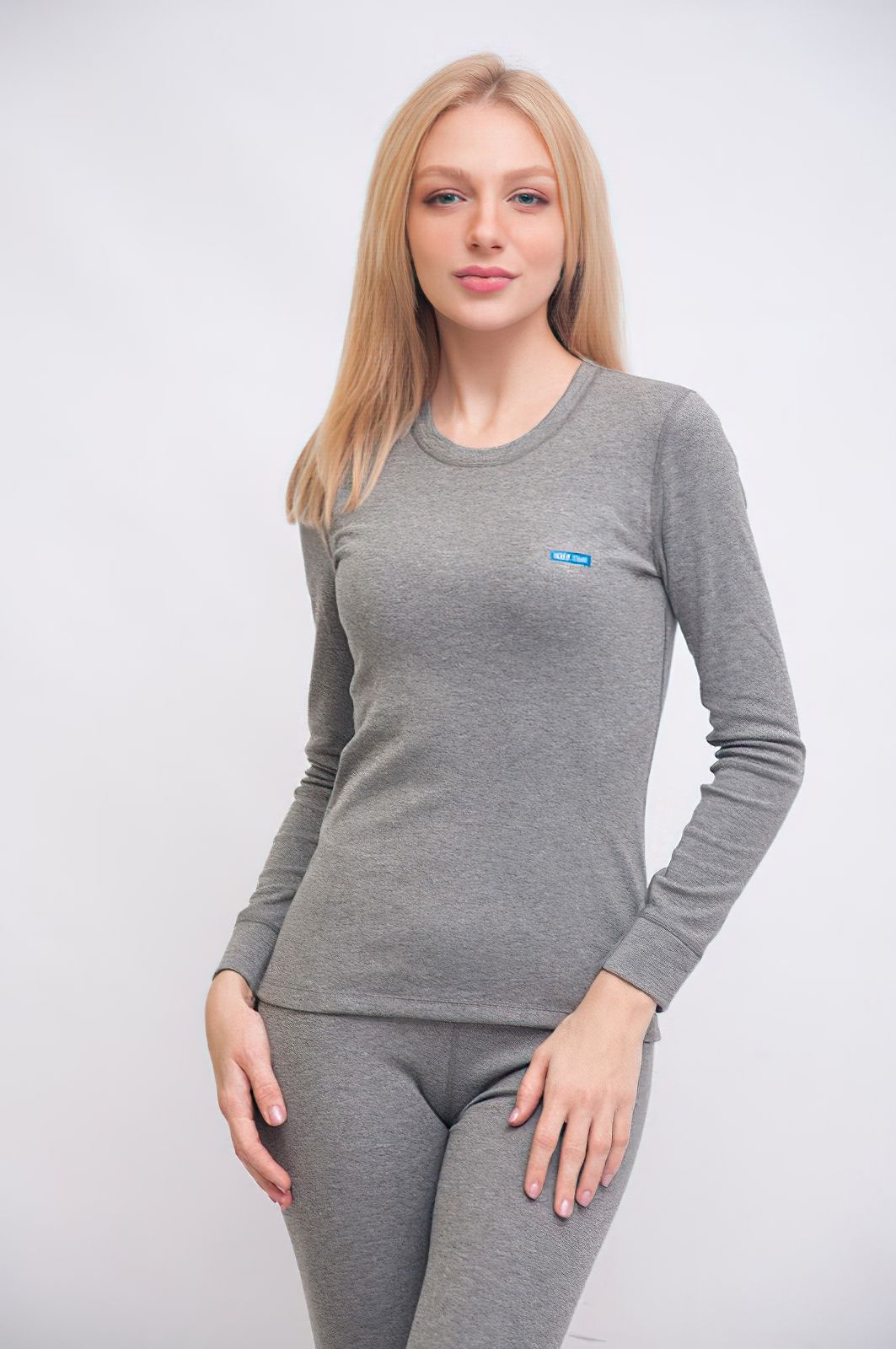 Комплект состоит из джемпера и кальсон, цвет серый.