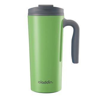 Термокухоль Aladdin Aveo об'ємом 0,47 літра. Подвійна стінка з пеноизоляцией, де зовнішня стінка з нержавіючої сталі і внутрішня поверхня гуртки пластикова. Кришка - непроливайка откручивающаяся з закривається клапаном для пиття. М'яка обгумована рукоятка.