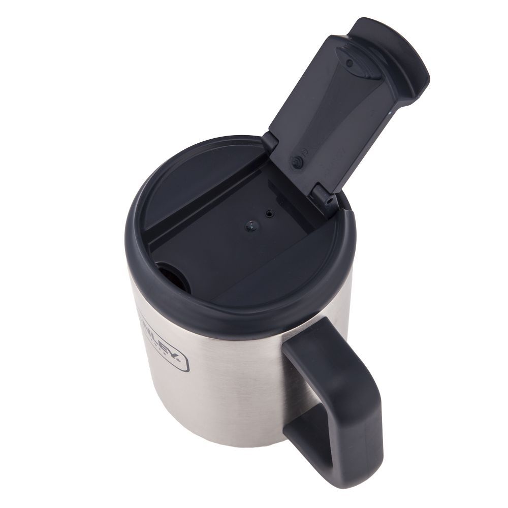 Потужна туристична термокухоль Stanley Adventure SS Camp об'ємом 0,47 літра з двома сталевими стінками і 100% герметичною кришкою на різьбі і отвором для пиття, збереже ваш напій гарячим, а вас сухими при будь-яких потрясіння. Велика, міцна і зручна рукоятка. Утримує тепло до 1 години, холод до 1,5 годин