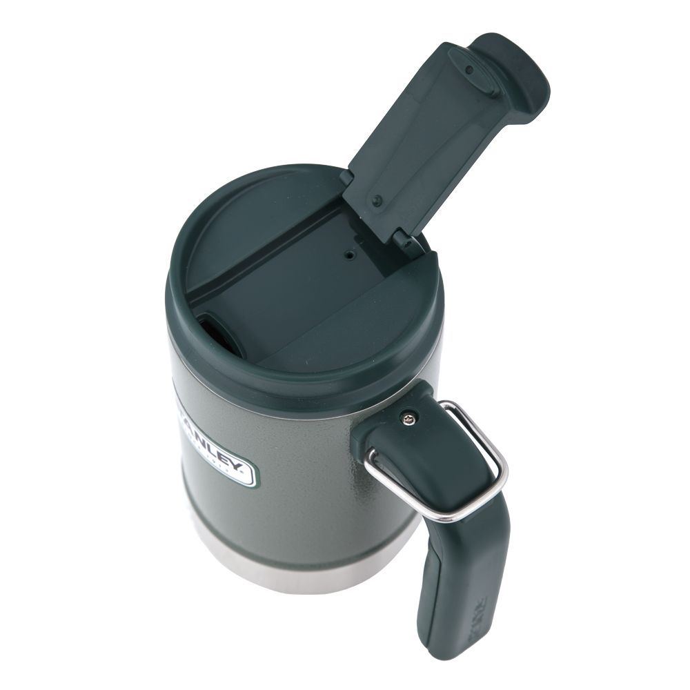 Безсмертна могутня туристична термокухоль Stanley Classic Camp об'ємом 0,47 літра з двома сталевими стінками, посиленим дном і 100% герметичною кришкою на різьбі і отвором для пиття, збереже ваш напій гарячим, а вас сухими при будь-яких потрясіння. Рукоятка гуртки з D-подібним кільцем, що дозволяє закріпити її до рюкзака чи до іншого екіпіровці. Утримує тепло до 2,5 годин, холод до 4 годин