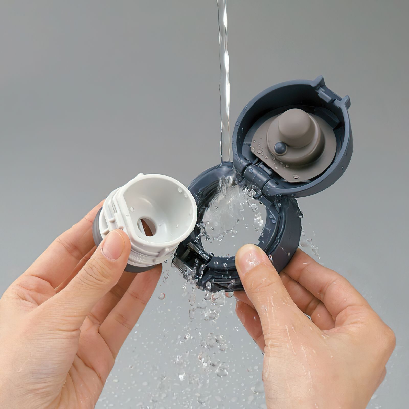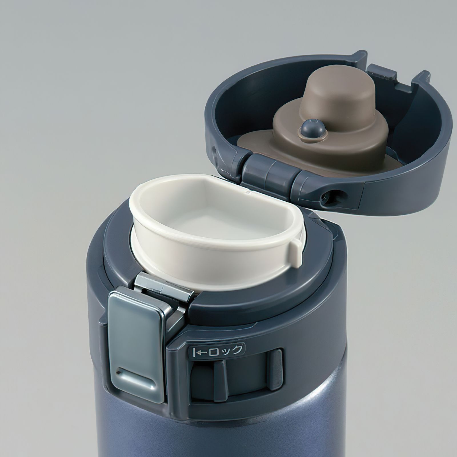 Унікальна кришка, яка автоматично відкривається після одного натискання, при цьому механізм сконструйований так, щоб запобігти появі бризок при відкриванні.Після натискання кнопки, кришка трохи відкривається, даючи можливість стекти утворився краплях. Повністю кришка розчиняться тільки після того, як ви відпустите кнопку. Також кришка додатково оснащена блокуванням від випадкового натискання на кнопку відкриття.