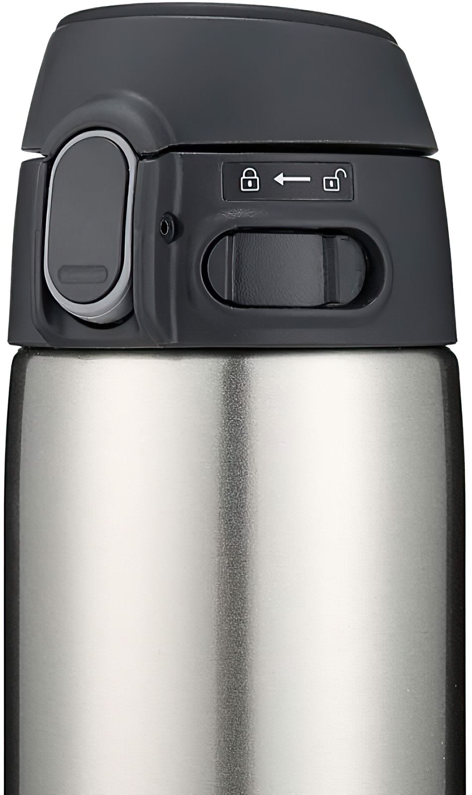 Унікальна кришка, яка автоматично відкривається після одного натискання, при цьому механізм сконструйований так, щоб запобігти появі бризок при відкриванні.Після натискання кнопки, кришка трохи відкривається, даючи можливість стекти утворився краплях. Повністю кришка розчиняться тільки після того, як ви відпустите кнопку. Також кришка додатково оснащена блокуванням від випадкового натискання на кнопку відкриття.