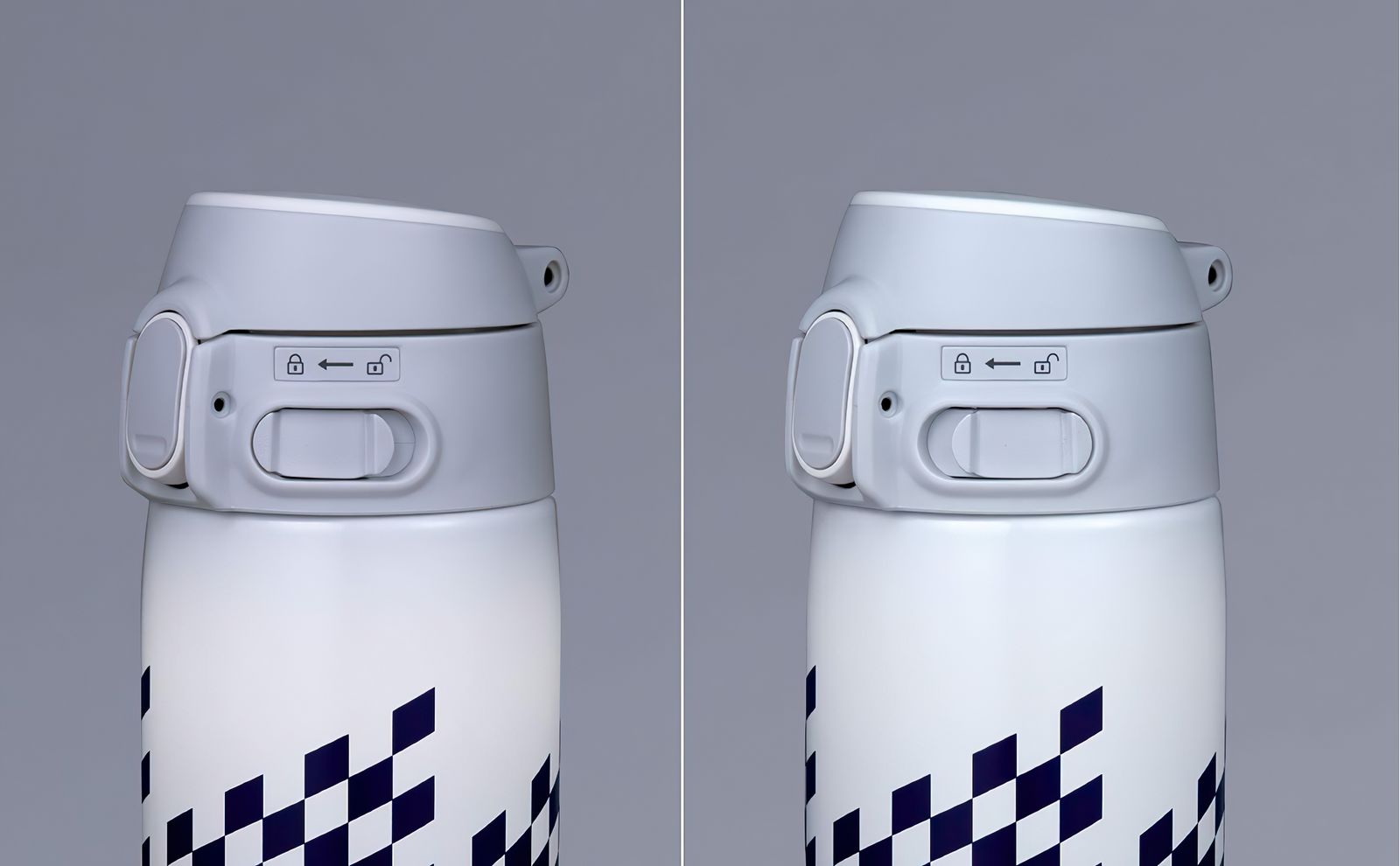 Унікальна кришка, яка автоматично відкривається після одного натискання, при цьому механізм сконструйований так, щоб запобігти появі бризок при відкриванні.Після натискання кнопки, кришка трохи відкривається, даючи можливість стекти утворився краплях. Повністю кришка розчиняться тільки після того, як ви відпустите кнопку. Також кришка додатково оснащена блокуванням від випадкового натискання на кнопку відкриття.