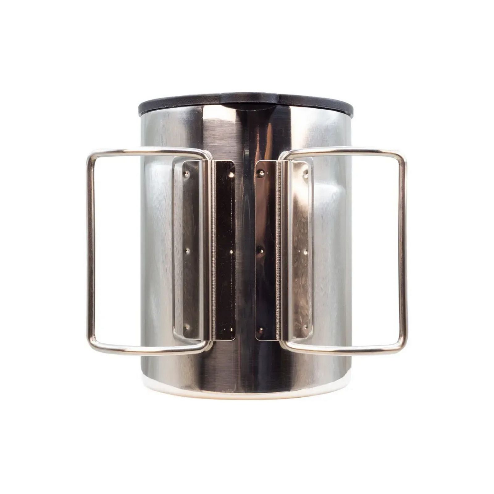Термокружка с удобными складными ручками 400 мл занимает минимум места в рюкзаке. Плотно закрывающаяся крышка снабжена закрывающейся "поилкой". Ручки надежно прикреплены к корпусу с помощью точечной сварки. Крышка-поилка из термостойкого пластика предохраняет от проливания и не дает напитку остыть. Полированная поверхность легко моется