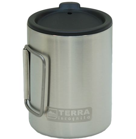 Термокухоль Терра Інкогніта T-Mug об'ємом 250 мл, з подвійними складаними ручками і пластиковою кришкою з поїлкою, гуртка зроблена з класичесской харчової нержавіючої сталі марки 18/8. Подвійні стінки з вакуумною термоізоляцією захистять ваші руки від високої температури напою і водночас збережуть його високу або низьку температуру максимально можливо довго.