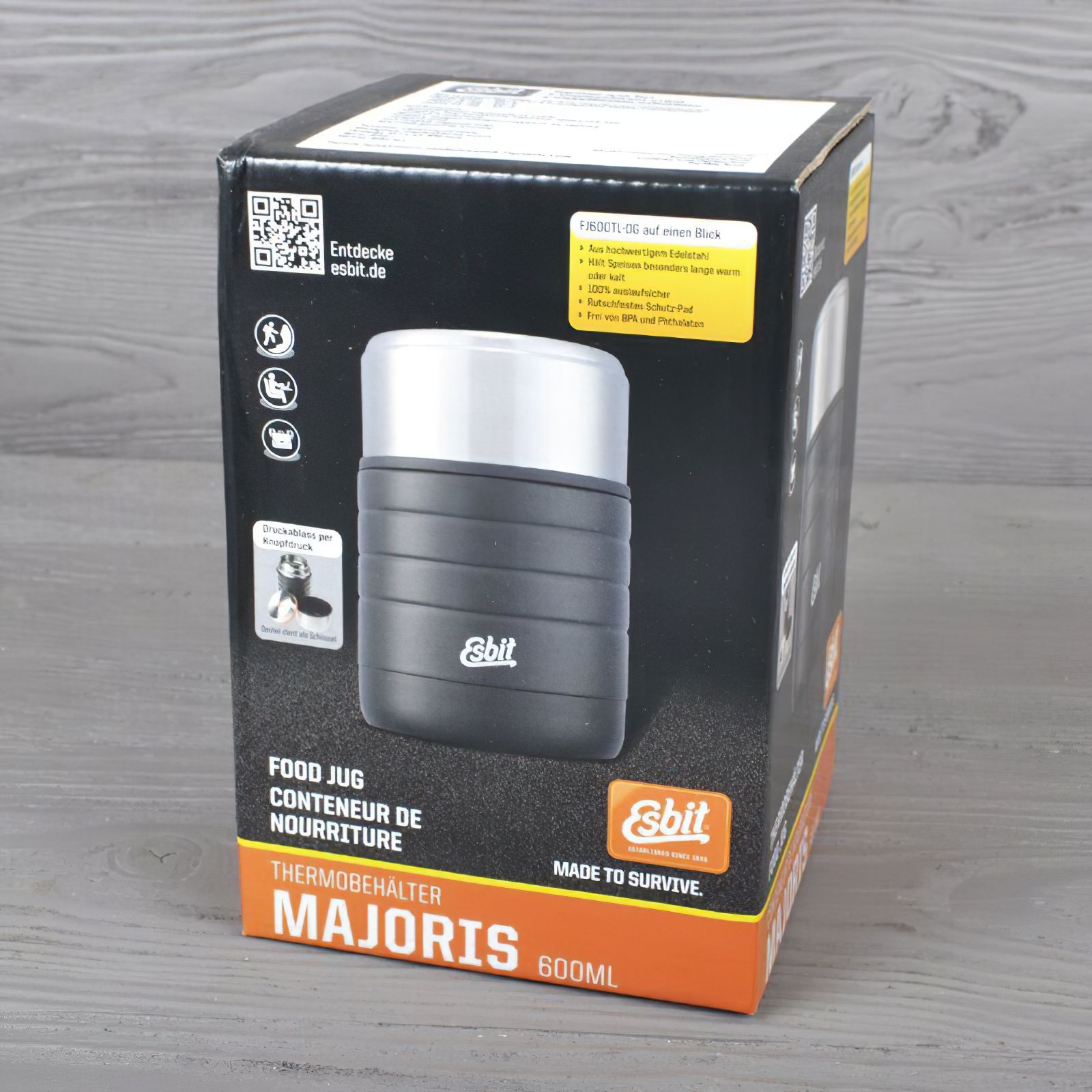 Термос для їжі Esbit Majoris FJ600TL об'ємом 600 мл виготовлений з нержавіючої сталі, має стильний дизайн. Він герметичний і підійде для використання в подорожах або для щоденних обідів в офісі. Кришку можна використовувати як тарілку. Зручна система закриття / відкриття. Великий діаметр отвору дозволяє легко наповнювати термос їжею, а також його мити. Хороший дизайн - це питання гарного смаку. І це легко продемонструвати цим міцним харчовим термосом, який зроблений з високоякісної нержавіючої сталі. Виглядає круто, але гаряче, коли справа стосується внутрішніх цінностей. Завдяки надійній технології ізоляції термос для їжі зберігає гарячу їжу в теплі або холодну в холоді протягом тривалого часу.