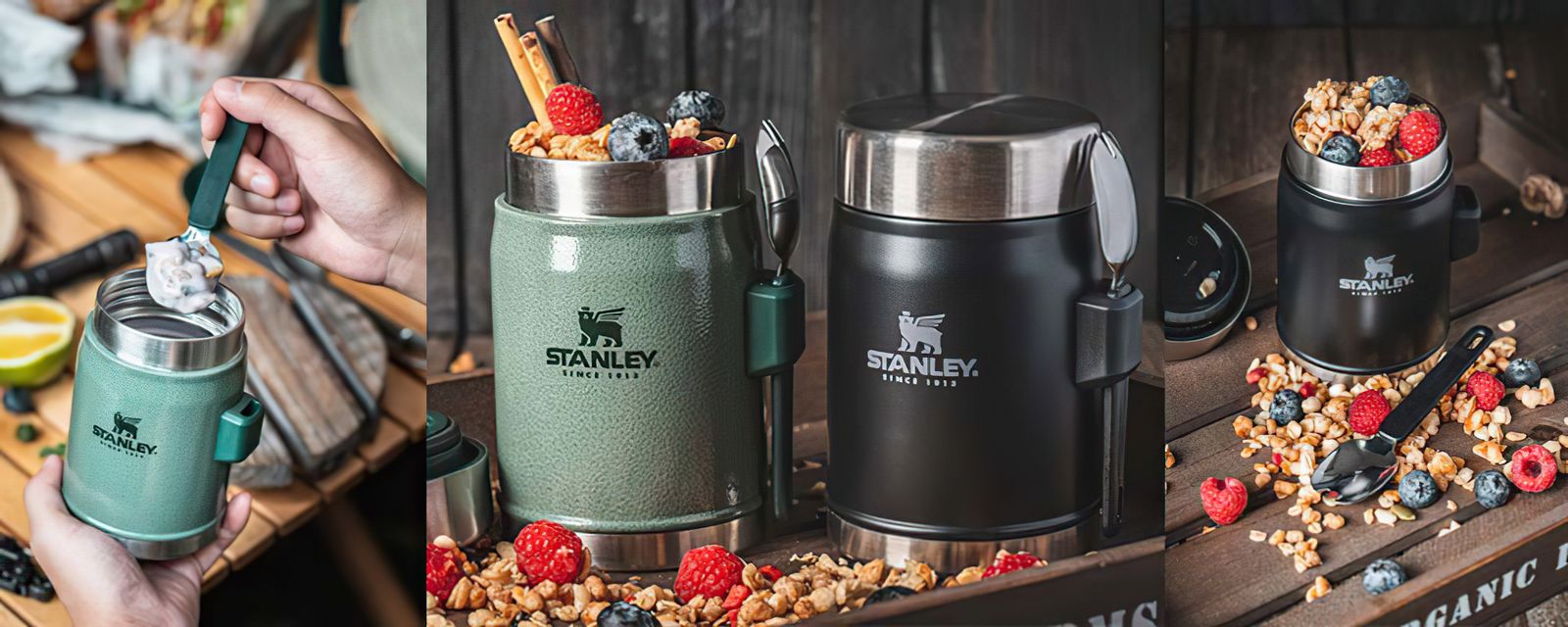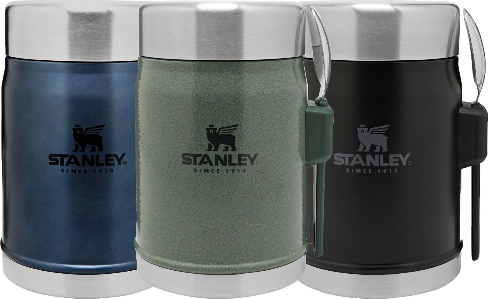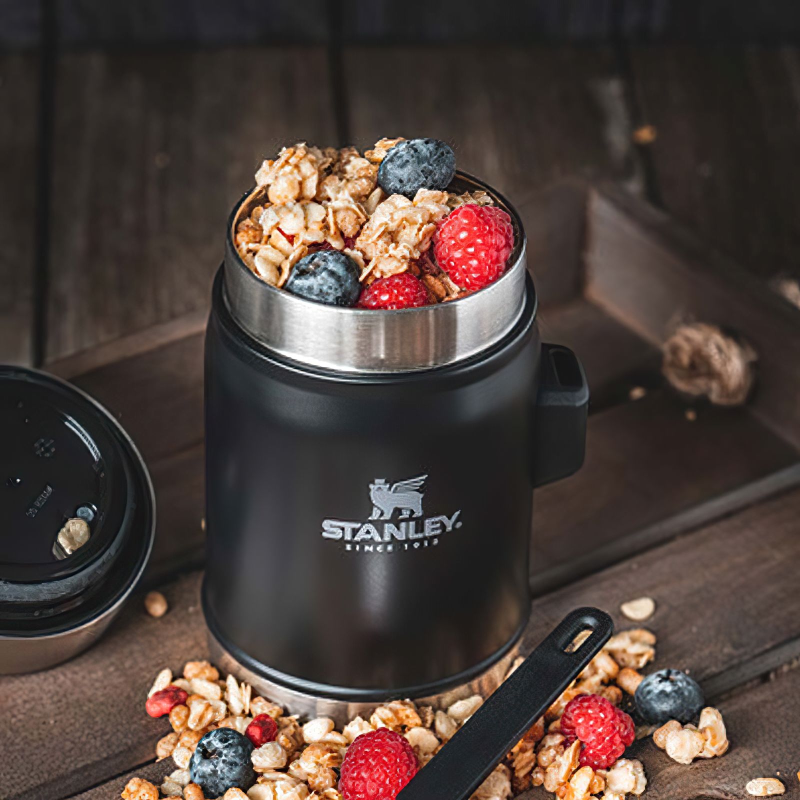 Термос для еды Stanley Classic Legendary Food Jar объемом 0,4 литра с ловилкой, он идеально подходит для кемпинга, рыбалки, пеших прогулок на природе или всего, что может приготовить ваша мама. Вы получите гарячий борщ в обед даже, если залили его в термос рано утром. Также он может сохранять температуру и холодной еды. Подходит для первых и вторых блюд, сохраняя их температуру в течение долгих 7 часов. Герметично закрывается, поэтому вам не нужно беспокоиться об утечках, а широкая горловина облегчает очистку.