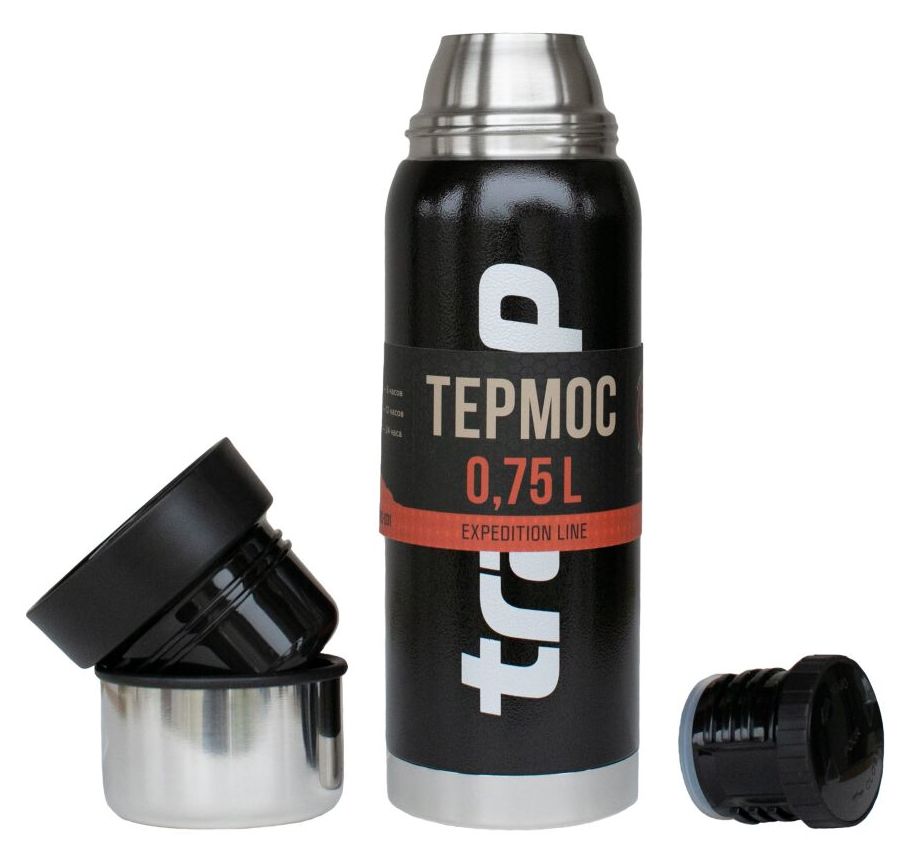 Термос Tramp Expedition Line об'ємом 0,75 літра, це модель з лінійки найпопулярніших термосів в Україні. Термос зроблений з неіржавіючої сталі, завдяки подвійним стінкам довго зберігає температуру як гарячого, так і холодного напою. Проста і надійна конструкція, ніякого руків'я, ніяких кнопок, просто легко загвинчується пробка з каналами і подвійна кришка. Нова серія Expedition Line з довічною гарантією!