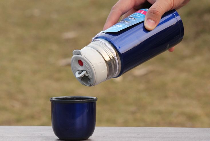 Спеціальний клапан у внутрішній кришці термоса дозволить вам наливати напої не відкручуючи саму кришку, досить просто натиснути на кнопку і відкриється заливний носик. Таким чином ви максимально довго збережіть темпратуре напою всередині термоса.