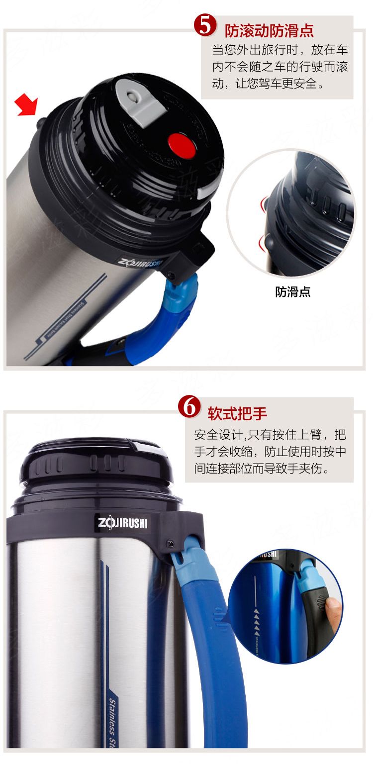 Оригінальний термос японської компанії Zojirushi SF-CC20 XA - модель Tuff Boy об'ємом 2 літра. Міцний сталевий корпус в пластиковому кільцевому захисному обрамленні зверху і знизу термоса зі спеціальними гумовими ніжками для стійкості в лежачій позиції. Мідне покриття зовнішньої вакуумної стінки для максимальної енергоефективності та внутрішнє захисне покриття колби тефлоном. Його легко переносити завдяки великий складаний полімерної ручці і плечового ременя. Широка діаметром 7 см горловина, основна герметична кришка з кнопкою і клапаном з носиком для зручного налития напою, подвійна кришка закриває легко перетворюється в дві кружки для розпивання чаю з друзями. Відмінний варіант для повсякденного використання, активного відпочинку, пікніків, походів або спортивних заходів.