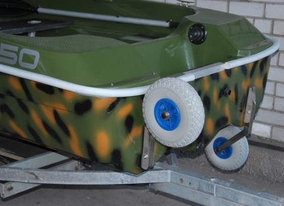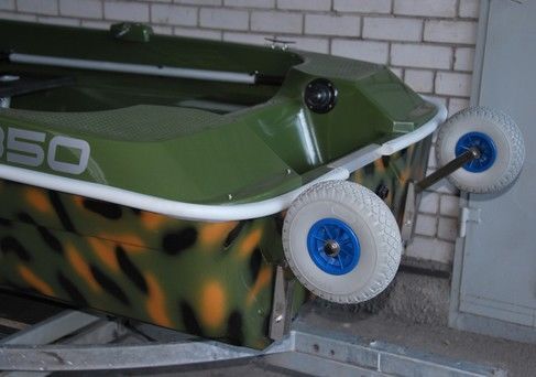 Колеса встановлюються вигином під човен і тільки так, інакше при установці навпаки, ви ризикуєте пошкодити кріплення коліс на транці