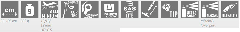 Система фіксації SpeedLock, це надзвичайно швидке регулювання довжини палиці, вона сертифікована TUV Sud і значно перевищує його вимоги в дотриманні 55 кг навантаження на палицю, витримуючи гарантовано більш ніж 75 кг навантаження. Важільний механізм блокування SpeedLock наступного покоління забезпечує швидку і надійну регулювання довжини навіть руками в рукавичках і більш зручний для користувача завдяки піднесеному регулювального диску, що дозволяє відрегулювати притискну силу при необхідності. Ніяких інструментів не потрібно!