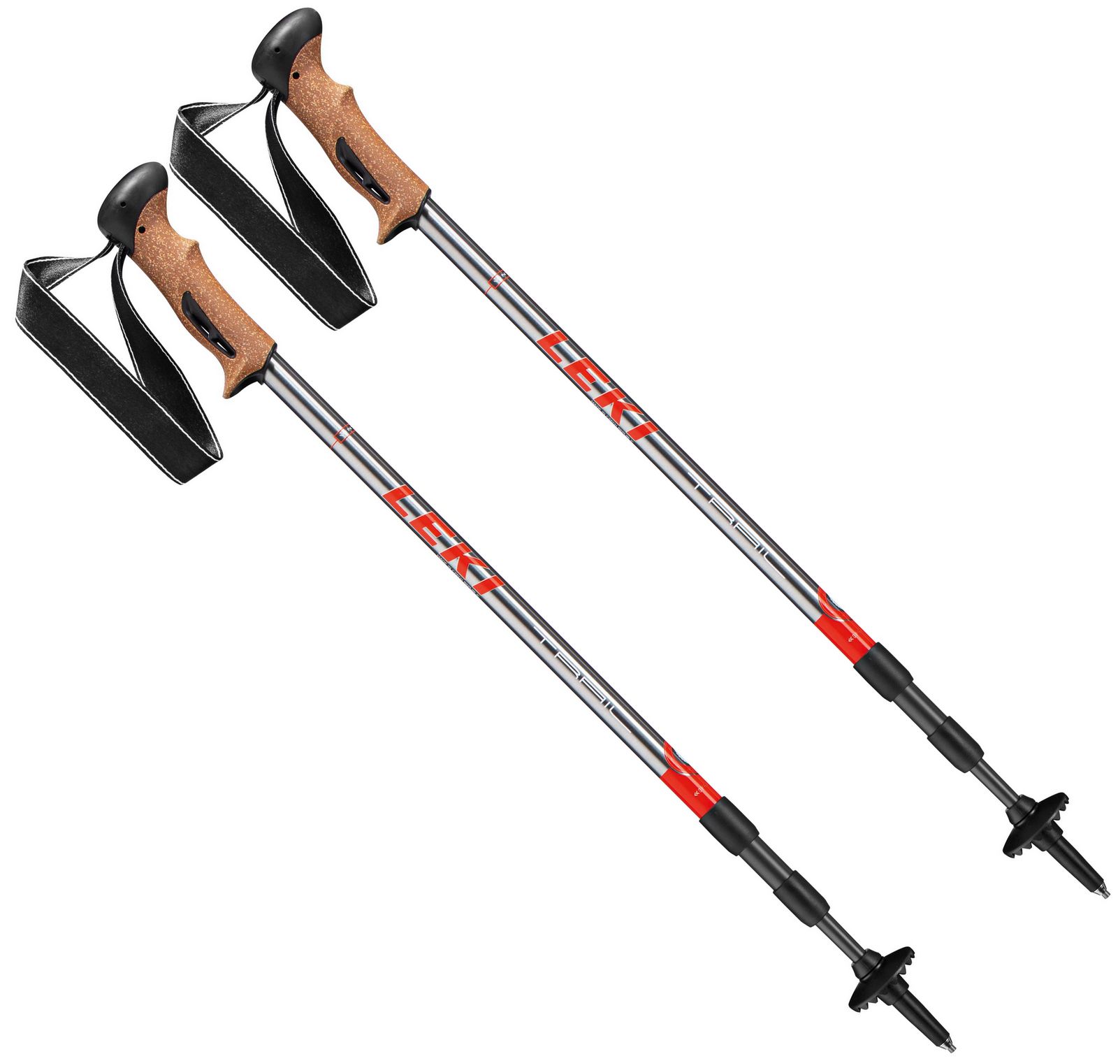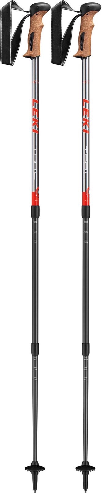Трекінгові трисекційні телескопічні палиці Leki Trail для туристів початківців, зроблені з міцного алюмінію HTS 6.0 для універсального використання в піших походах. Трекінговий рукоятка Soft Round Top Comfort анатомічної форми з регульованим ременем темляком Lock Security Strap. Система SuperLock дозволяє максимально надійно відрегулювати робочу довжину палиць від 110 см до 145 см або компактно скласти до 65 см.