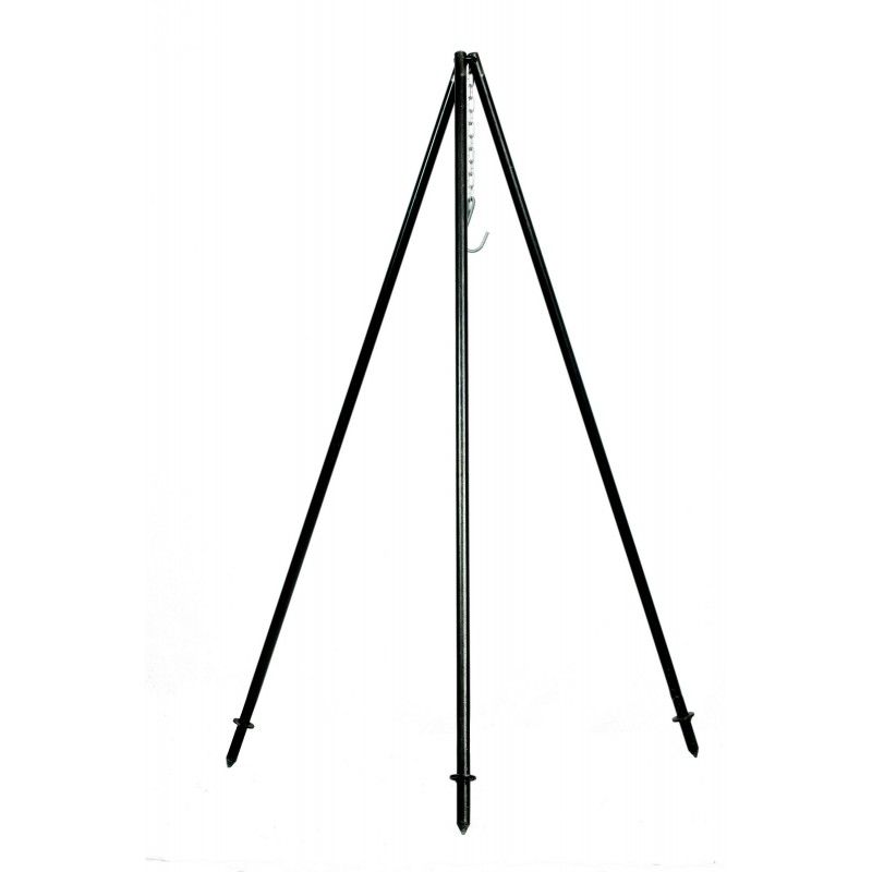 Сталева тринога похідна вогнищевий для казанка висотою 120 див. Компактна та зручна при транспортуванні, вона послужить вам гарною підмогою в приготуванні їжі на багатті в казані. Дуже міцна, легко збирається і встановлюється. Вся конструкція поміщається в невеликий чохол.