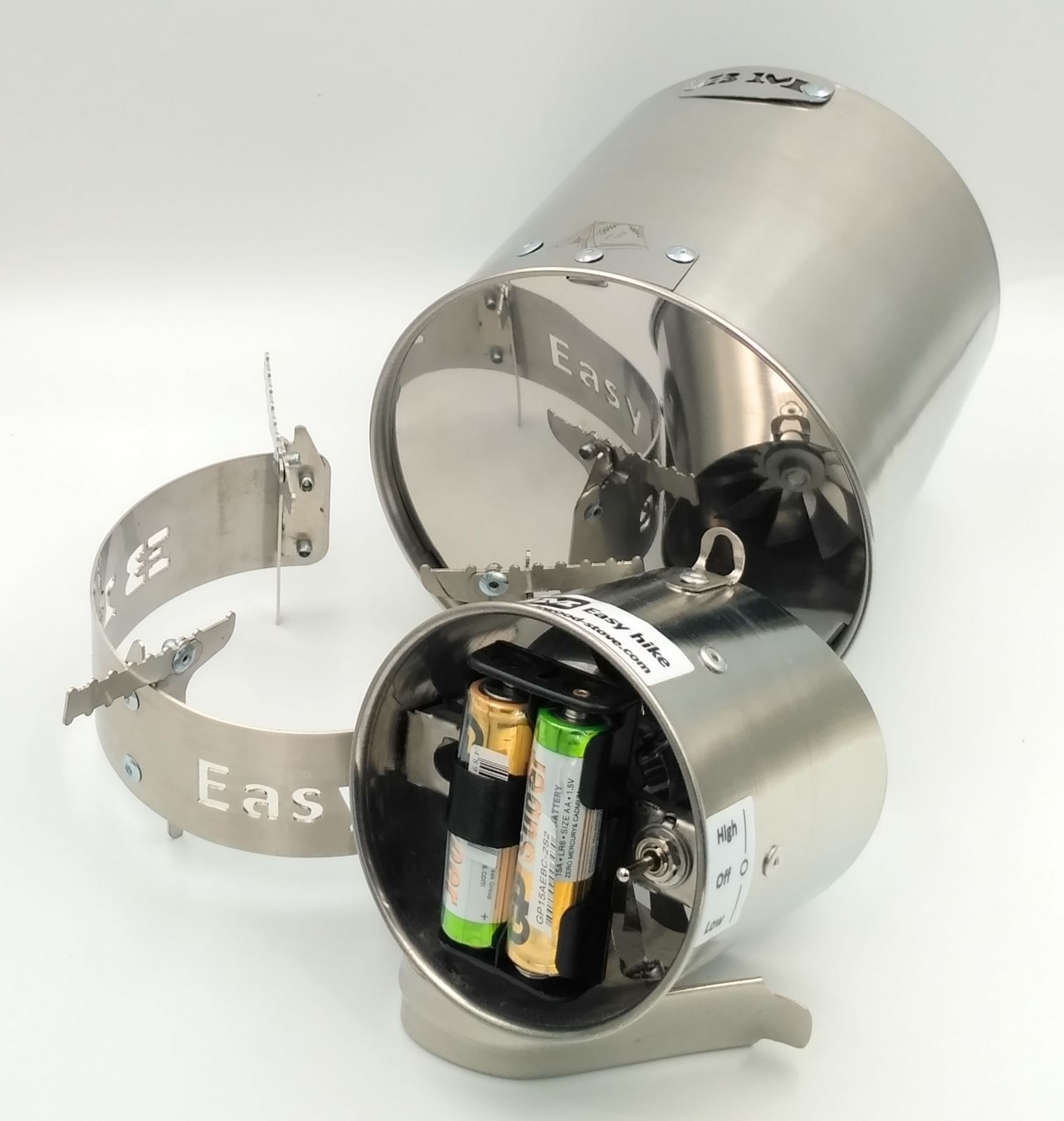 Вентілятор блоку живиться від 2 батарейок розміру АА (пальчик) напругою 3 Вольта
