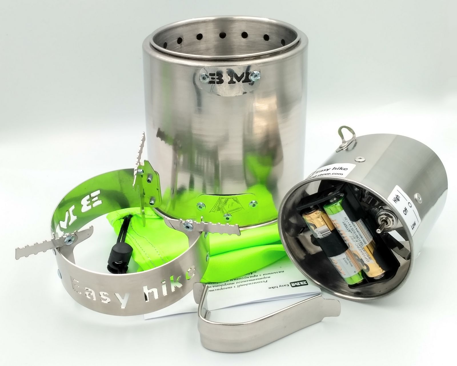 Твердопаливний пальник "Airwood Euro-H" - легка компактна і просто незамінна грубка в умовах обмеженої кількості дров і часу! Завдяки блоку нагнітання повітря, що працює від двох ААА батарейок - грубка дає потужний нагрів навіть при використанні сирих дров і дуже швидко доводить до кипіння ємність з водою. Наприклад час закипання 1 літра води становить від 5 хвилин, в залежності від якості палива і умов навколишнього середовища.
