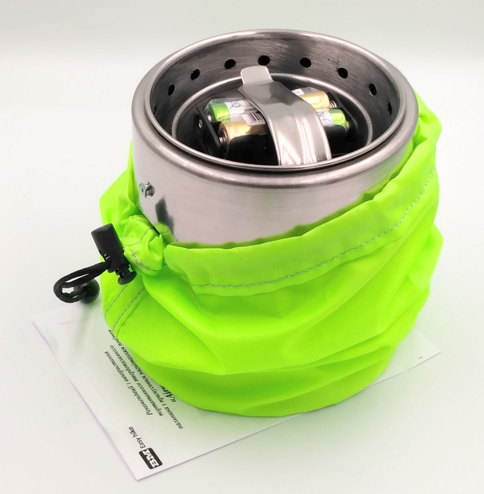 - Лійка комплектується оновленою версією розкладної підставки для посуду. Цей аксесуар має підвищену жаростійкість і спеціально розроблений для більш стійкого розміщення на пальнику круглих котелків (каструль) з широким дном. Підставка сподобається і любителям ранкової кави на природі, приготовленій у турці (посуд із дном маленького діаметру). Завдяки відкидним лапкам, на розкладній підставці буде "зручно" як посуду з діаметром дна 5 см, так і посуду з діаметром дна 25 см! Після розкриття лапки фіксуються під певним кутом до горизонту, забезпечуючи таким положенням надійне захоплення дна посуду, а при збільшенні навантаження лапки приймають горизонтальне положення, при цьому верхня частина полотна підставки по всьому колу трохи розходиться назовні, збільшуючи жорсткість підставки та стійкість посуду.