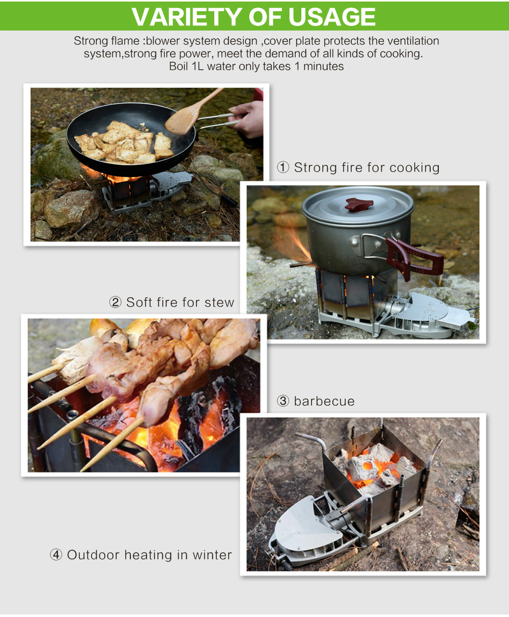 та компактність. Крім того, готувати можна швидко і легко. Висока потужність - 6 тисяч ват. На закипання одного літра води знадобиться всього лише від однієї до трьох хвилин часу. В якості палива тут можна застосовувати дрова, тирсу, шишки, вугілля, деревну стружку. Що досить практично і добре з точки зору екологічності.